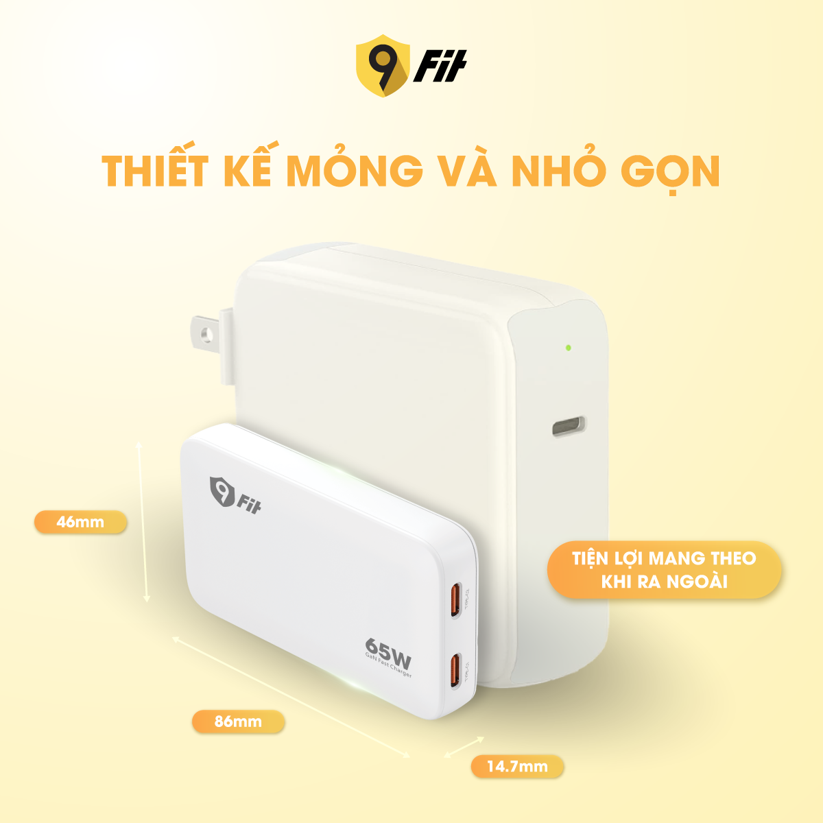 Sạc 9Fit Slim PD 65W 2C GaN - Bộ sạc nhỏ gọn, mạnh mẽ, đáp ứng nhu cầu sạc nhanh laptop và đa thiết bị