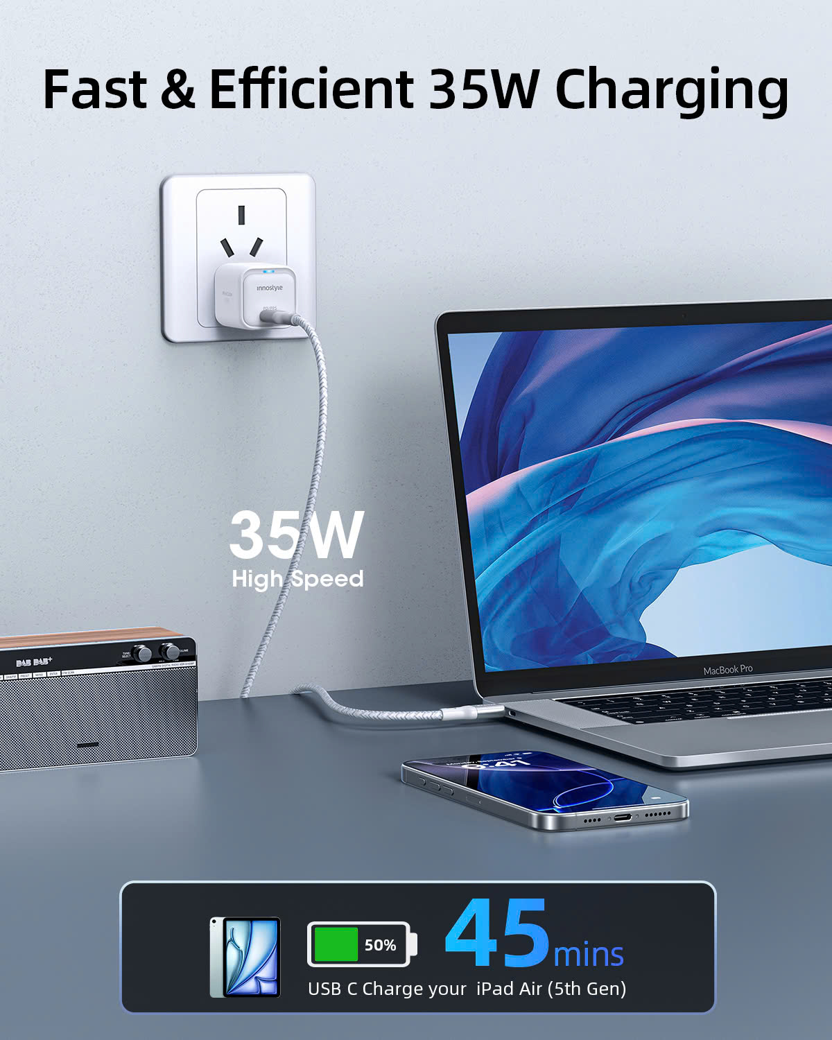 Với nhu cầu học tập, ghi chú, làm bài và giải trí trên iPad, iPhone hay laptop, Cốc sạc Innostyle GoCharge 35W 1C Charger là lựa chọn tiết kiệm, nhỏ gọn và tiện dụng. Công nghệ PD và PPS giúp sạc nhanh, an toàn, phù hợp để mang theo đến lớp hoặc quán cà phê mà không lo hết pin giữa giờ học.