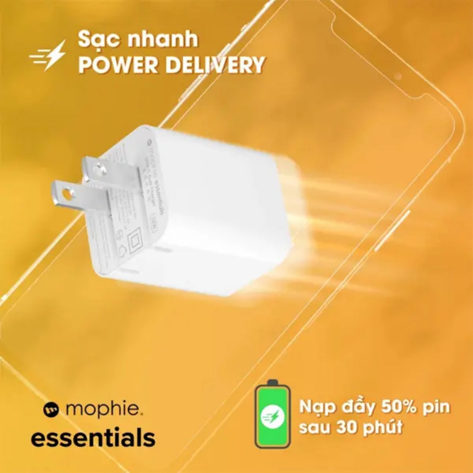Cốc sạc Mophie Essentials 40W 1C GaN hỗ trợ chuẩn sạc nhanh Power Delivery (PD) - Công nghệ sạc phổ biến và đáng tin cậy nhất hiện nay. Với công suất đầu ra lên tới 40W, sản phẩm có thể nạp đầy năng lượng cho điện thoại, máy tính bảng hoặc laptop trong thời gian ngắn đáng kinh ngạc. Cụ thể, chỉ với 30 phút, bạn đã có thể sạc khoảng 50% dung lượng pin cho iPhone hoặc iPad, giúp tiết kiệm thời gian đáng kể trong những lúc bận rộn. Mophie cũng tích hợp hệ thống quản lý dòng điện thông minh, giúp tự động điều chỉnh công suất phù hợp cho từng thiết bị - Đảm bảo tốc độ sạc nhanh mà vẫn an toàn tuyệt đối cho pin.