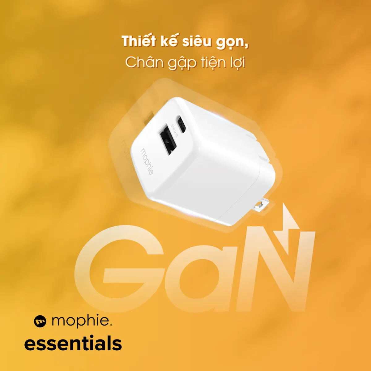 Điểm nổi bật nhất của sản phẩm nằm ở việc ứng dụng công nghệ GaN (Gallium Nitride) - Thế hệ vật liệu bán dẫn mới thay thế silicon truyền thống. Nhờ GaN, dòng điện được dẫn truyền nhanh hơn, giảm lượng nhiệt tỏa ra và tiết kiệm điện năng hơn nhiều lần. Công nghệ này cho phép Mophie thu gọn toàn bộ linh kiện công suất cao vào một thiết kế cực kỳ nhỏ, nhưng vẫn duy trì hiệu suất ổn định và khả năng sạc mạnh mẽ lên tới 40W. Dù bạn sạc liên tục trong nhiều giờ, cốc sạc vẫn mát và hoạt động êm ái, hạn chế tối đa tình trạng quá nhiệt thường gặp ở các củ sạc thông thường.