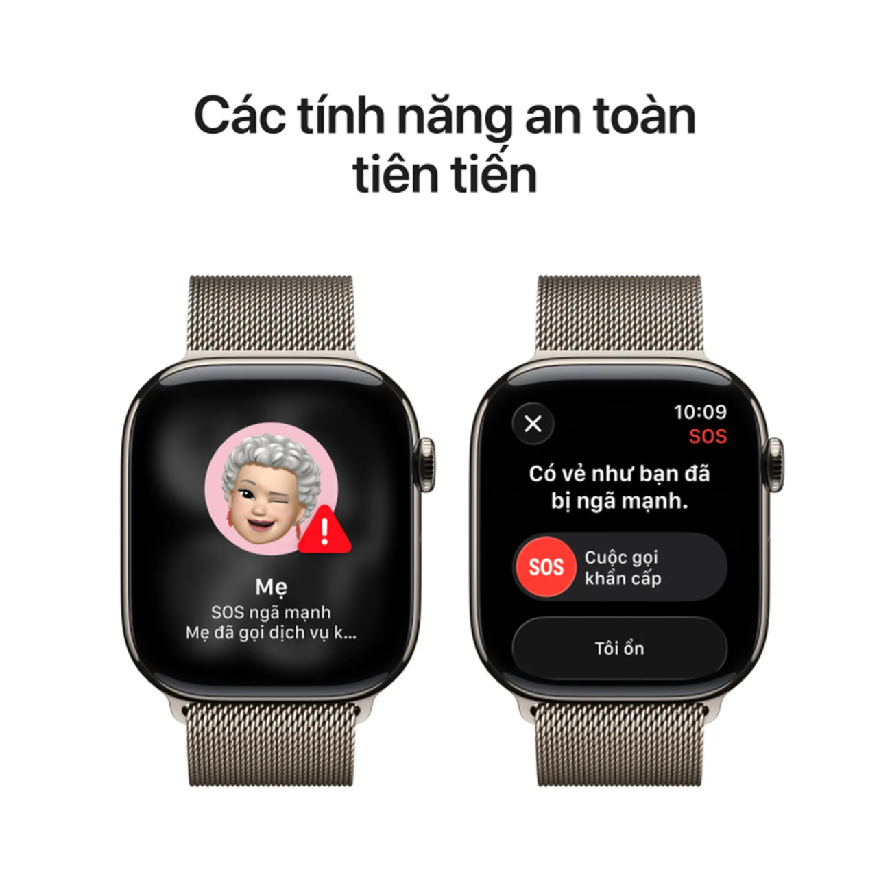 | Tính năng an toàn | Phát hiện ngã, SOS | Phát hiện ngã, SOS, Phát hiện va chạm |
