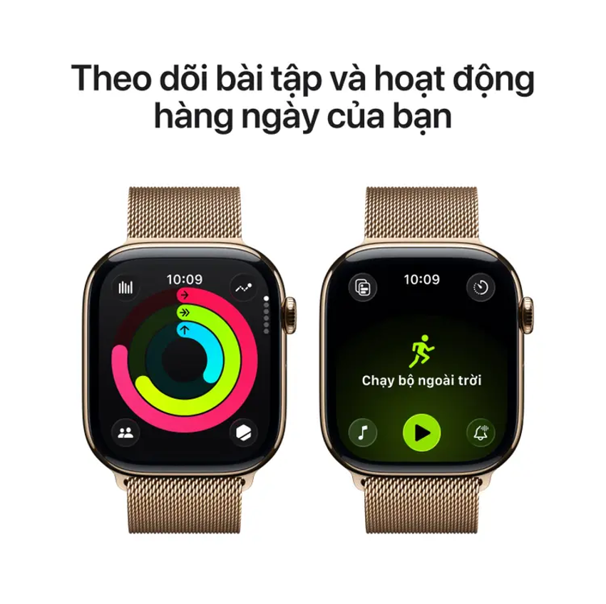 Apple Watch Series 11 46mm LTE - Viền Titan, Dây Quấn Milan Size S/M | Chính hãng Việt Nam hỗ trợ hàng trăm chế độ tập (yoga, chạy bộ, HIIT, đạp xe, bơi lội WR50, đi bộ đường dài…), ghi lại nhịp tim theo vùng, nhịp thở, nhịp độ (cadence), công suất đạp/chạy (power), pace, độ cao, lộ trình GPS… để bạn nắm rõ cả cường độ lẫn kỹ thuật.
