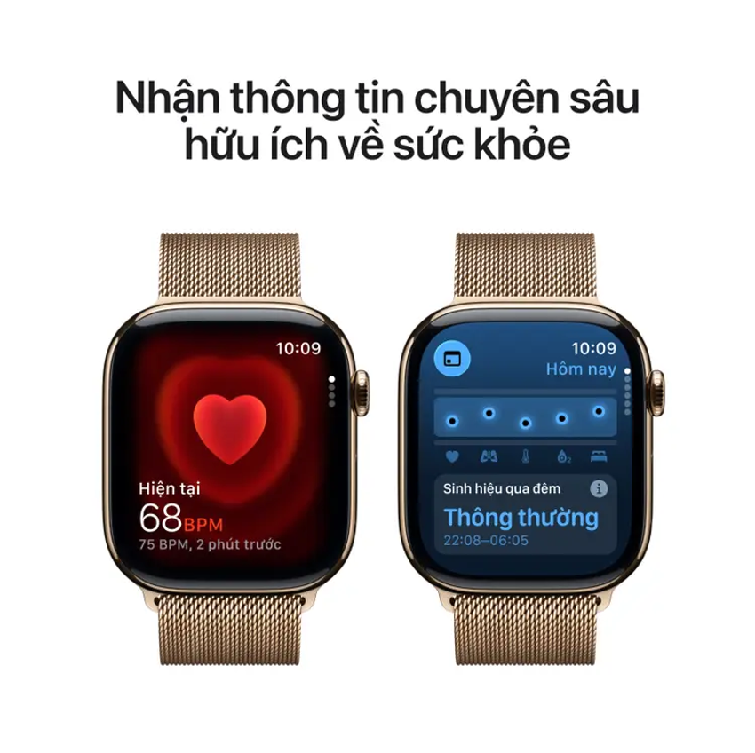 Apple Watch Series 11 46mm LTE - Viền Titan, Dây Quấn Milan Size S/M | Chính hãng Việt Nam tích hợp cảm biến nhịp tim quang học Gen 3, cảm biến SpO₂, cảm biến nhiệt độ da và gia tốc kế G-cao, kết hợp thuật toán học máy để ghi nhận cả những biến thiên rất nhỏ của cơ thể trong nhiều bối cảnh: Nghỉ ngơi, vận động cường độ cao, ngủ ban đêm hay môi trường nhiệt ẩm thay đổi. Nhờ đó, đồng hồ không chỉ đo lường tức thời mà còn theo dõi xu hướng sức khỏe theo thời gian.