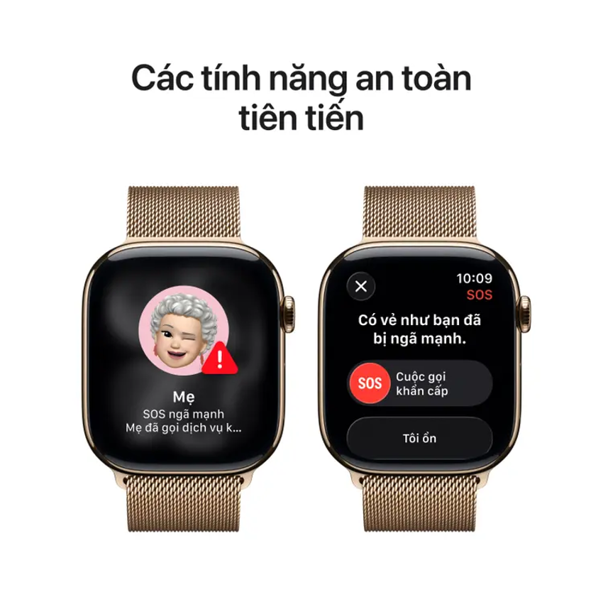 SOS qua LTE: Với eSIM và gói cước phù hợp, bạn có thể gọi cứu hộ trực tiếp từ cổ tay ngay cả khi không mang iPhone, đồng thời gửi vị trí thời gian thực để lực lượng hỗ trợ tiếp cận nhanh hơn. Trường hợp không có LTE, đồng hồ sẽ dùng iPhone ở gần để thực hiện cuộc gọi.