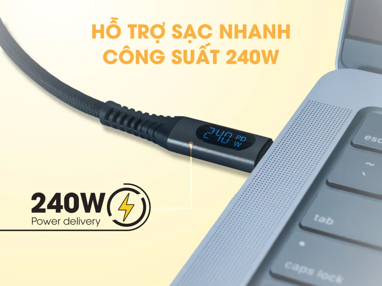 Cáp sạc 9Fit Supreme USB-C to USB-C LCD 240W dài 1M 9C24 hỗ trợ chuẩn USB Power Delivery 3.1 EPR, cho phép truyền tải công suất tối đa 240W. Với công suất này, người dùng có thể sạc nhanh MacBook Pro, laptop Windows, iPad, iPhone 15/16, điện thoại Android, máy chơi game chỉ bằng một sợi cáp duy nhất. Dù là làm việc tại văn phòng hay mang theo khi đi công tác, sản phẩm giúp giảm đáng kể số lượng dây sạc, mang lại sự gọn gàng và tiện lợi cho không gian làm việc.