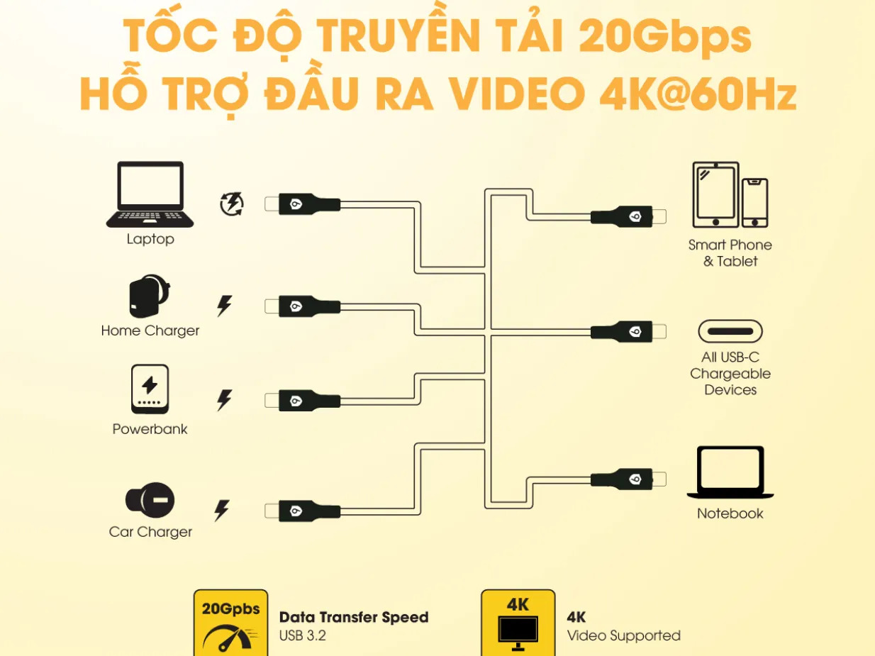 | Tính năng cơ bản: | Sạc nhanh; Màn hình LCD hiển thị trạng thái sạc; Tốc độ truyền tải lên đến 20Gbps; Hỗ trợ đầu ra video 4K@60Hz |