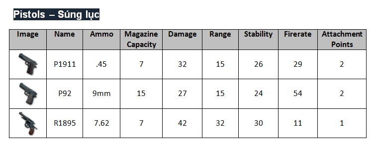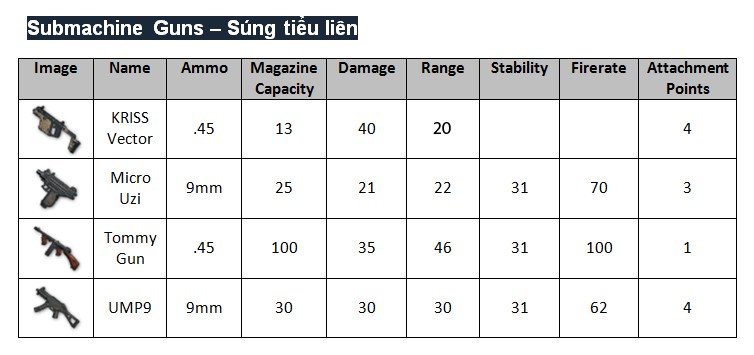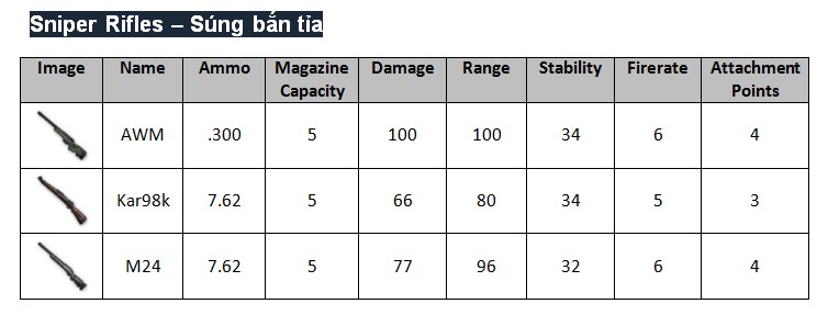 Trên đây là danh sách cùng với đặc tính của các loại vũ khí được sử dụng trong PUBG, hi vọng với bài viết này các bạn có thể hiểu rõ hơn về “ người anh em” kề vai tác chiến với mình, qua đó tăng khả năng lên top của bản thân.