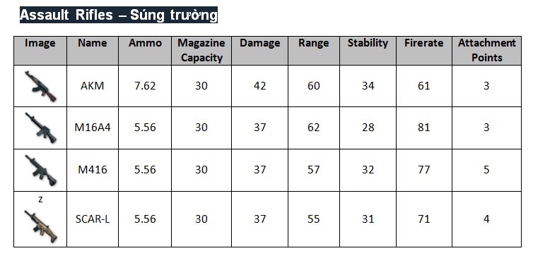 Đây là một loại súng mà có lẽ mỗi người chơi nên trang bị cho mình một khẩu. Điều đặc biệt của Assault Rifles đá chính là nó có khả năng xả đạn liên hồi, tốc độ bắn cực cao và dame cũng rất ổn định. Với công năng của mình súng trường phù hợp để tham gia cận chiến.