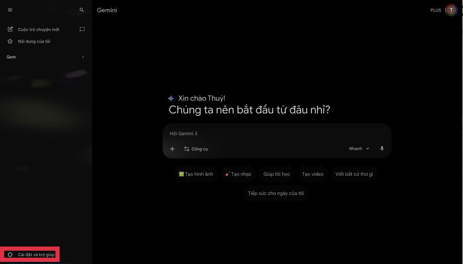 Bước 1: Truy cập Gemini trên trình duyệt → Chọn mục Cài đặt và trợ giúp (Settings and Help) ở góc dưới bên trái màn hình.