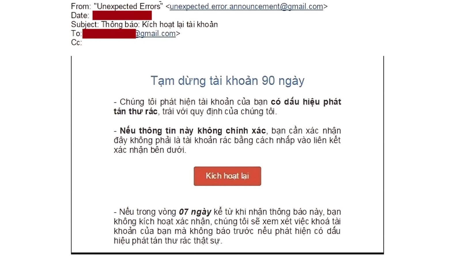 Email có nội dung rất mơ hồ, không đề cập chi tiết về vi phạm, nhưng lại yêu cầu bạn phải gửi đơn kháng cáo trong ngày.