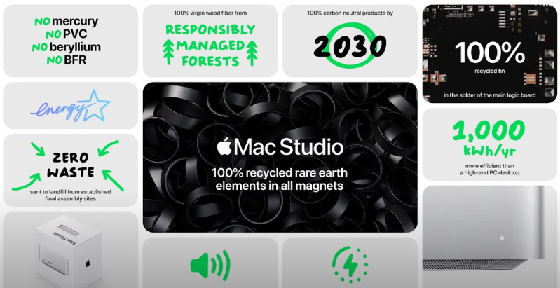 Studio display: màn hình 27-inch, 5K, sở hữu con chip A13, ống kính Ultra Wide 12MP với Center Stage, hệ thống 6 loa ngoài, 3 mic, 3 cổng USB-C, 1 cổng Thunderbolt, có thể hỗ trợ sạc nha Mac Pro 14-inch. Mức giá khởi điểm $1,599.