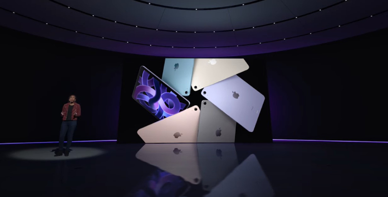 iPad Air: Sở hữu con chip M1, camera trước với ống kính Ultra Wide - Center Stage, hỗ trợ 5G. 3 tuỳ chọn màu hoàn toàn mới: Purple, Pink, Brighter Blue, vẫn giữ nguyên mức giá $599.