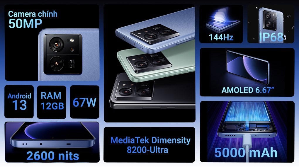 Xiaomi 13T vẫn đang là cái tên hot tại thị trường Việt Nam nhờ cấu hình mạnh mẽ và mức giá phải chăng. Điện thoại có chip Dimensity 8200-Ultra mạnh mẽ, màn hình đẹp và còn hợp tác với Leica để tối ưu hóa camera.