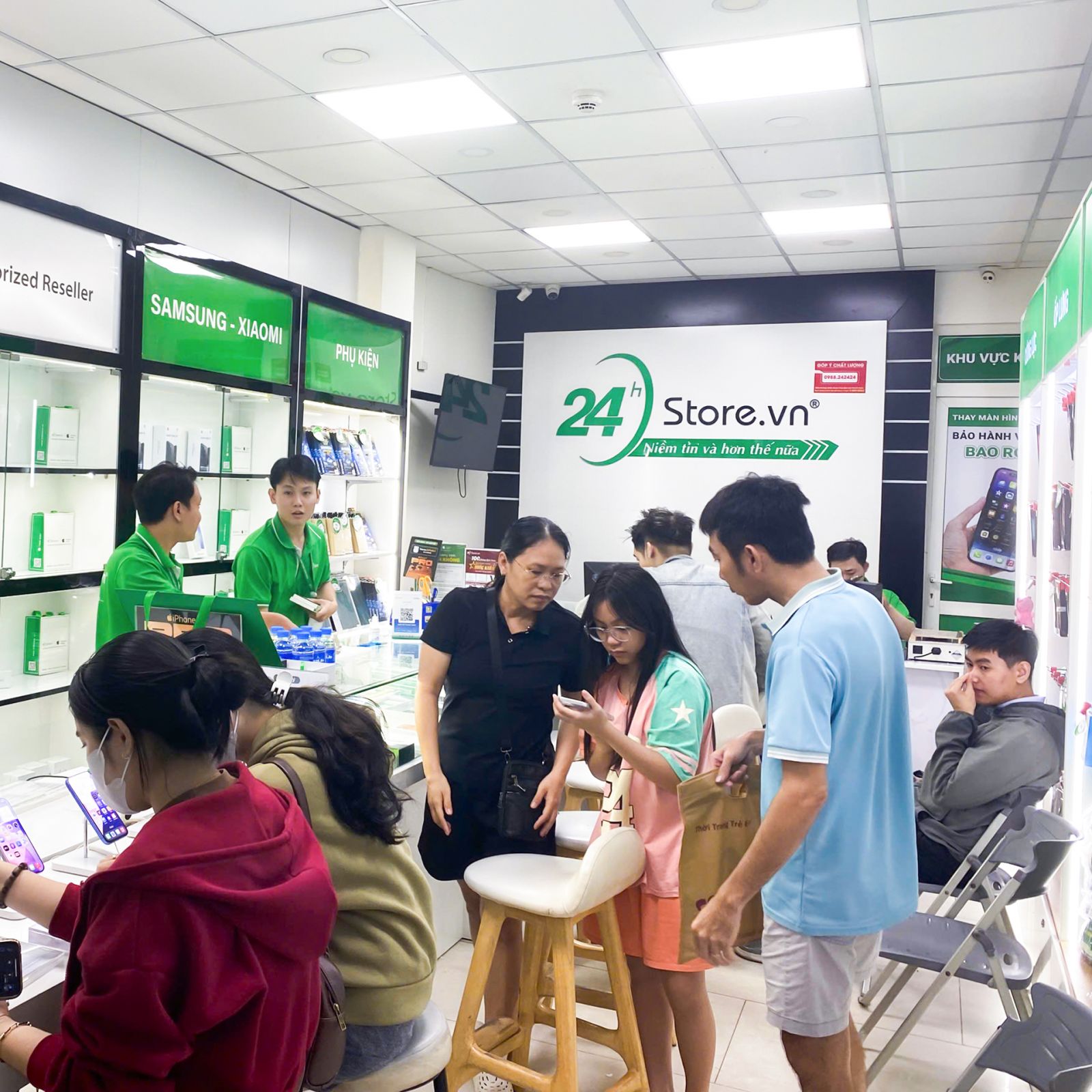 - Kiểm tra toàn diện trước khi bàn giao: Sau khi hoàn tất ép cổ, thiết bị sẽ được kiểm tra kỹ lưỡng về hiển thị, cảm ứng, Face ID, loa, mic, camera và các tính năng liên quan. Chỉ khi máy đạt trạng thái hoạt động ổn định, 24hStore mới tiến hành bàn giao cho khách hàng.