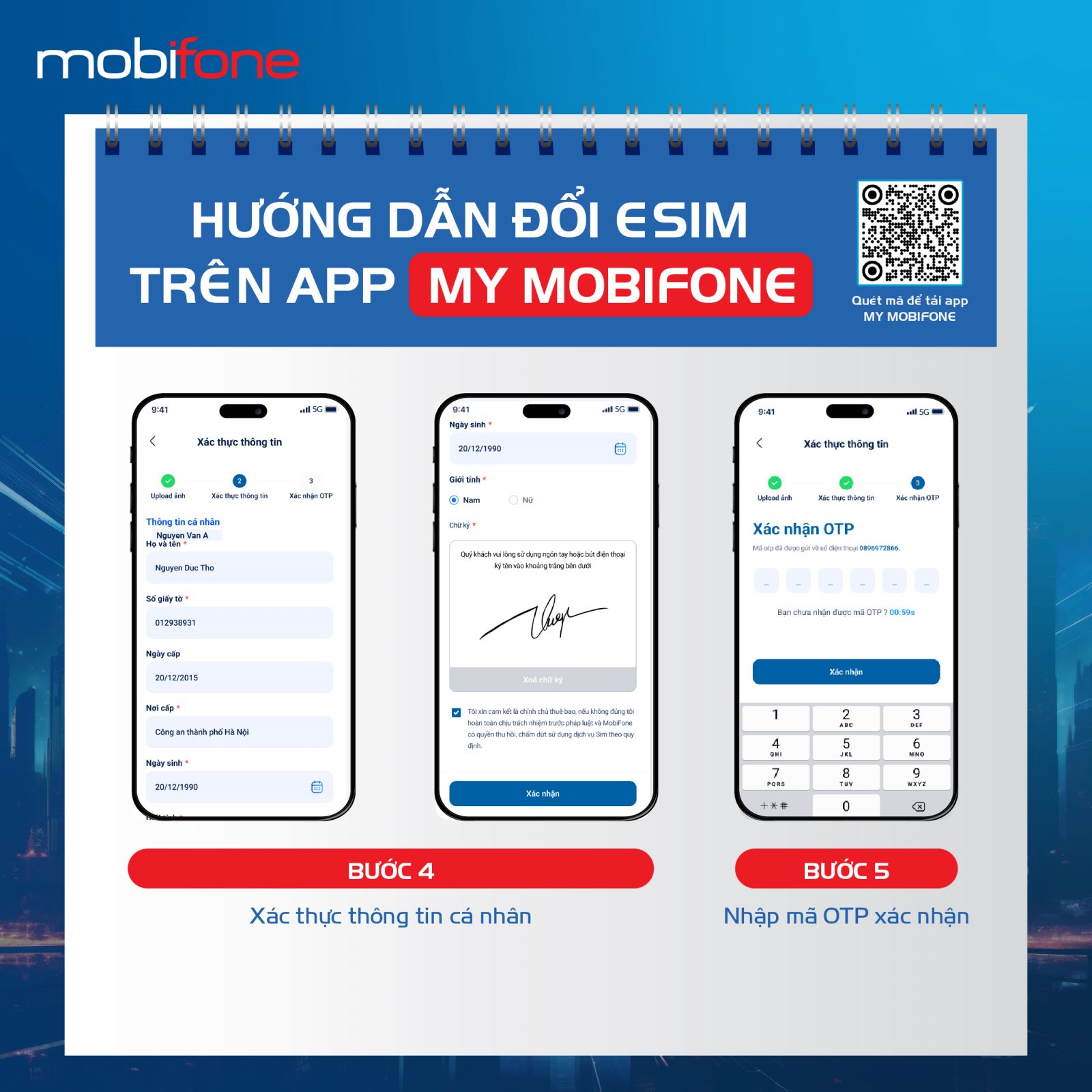 - Bước 3: Hồ sơ gồm phiếu yêu cầu đổi SIM (có chữ ký KH) + CCCD photo.