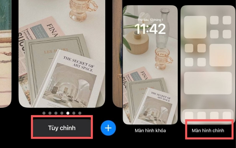 Bước 1: Tại giao diện màn hình khóa trên iPhone, hãy nhấn giữ cho đến khi xuất hiện Tùy chỉnh. Sau đó, bạn cần Chọn mục Màn hình chính.