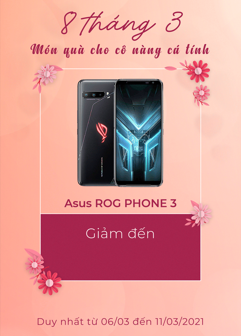 Quà Quốc tế phụ nữ 8 tháng 3 không nhất thiết phải là hoa. Đến 24hStore để hưởng loạt khuyến mãi có một không hai: iPhone mới ưu đãi đến 7.300.000đ, iPhone Like New giảm đến 1.023.000đ, ASUS ROG Phone 3 giảm đến 1.800.000đ, TẶNG hàng loạt phụ kiện khi sắm máy,... đảm bảo bạn sẽ có thể tìm ra món quà thật sự ý nghĩa dành cho người phụ nữ thân yêu.