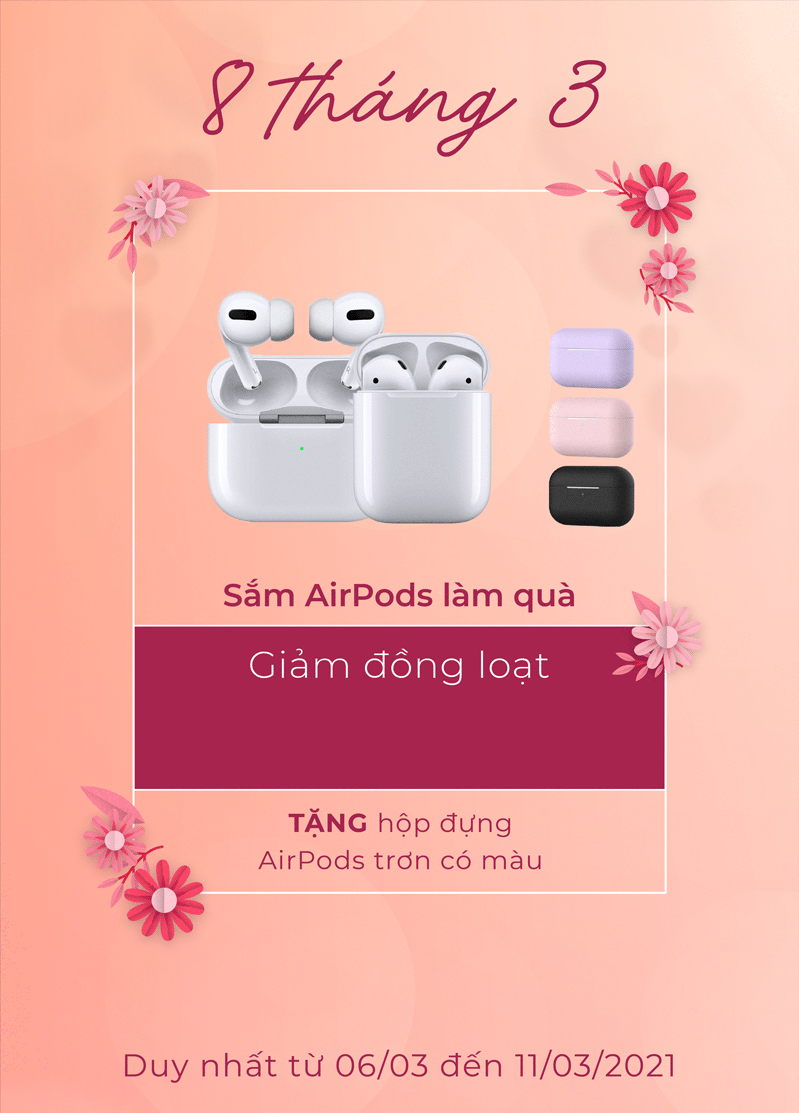 6. AirPods giảm đồng loạt, tặng hộp dựng (bao da) màu trơn