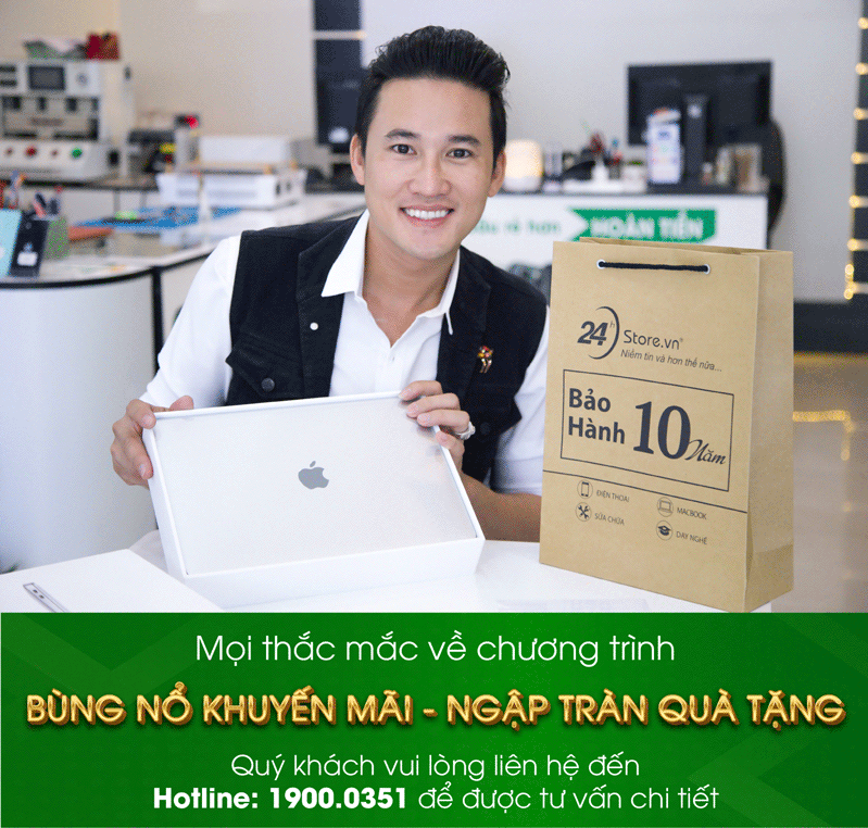 - Trong thời gian diễn ra chương trình, khi tham gia Thu đổi – lên đời MacBook tại 24hStore, Quý khách hàng sẽ được giảm 1.000.000đ trực tiếp trên giá sản phẩm, tặng thêm Voucher mua sắm lên đến 2.000.000đ.