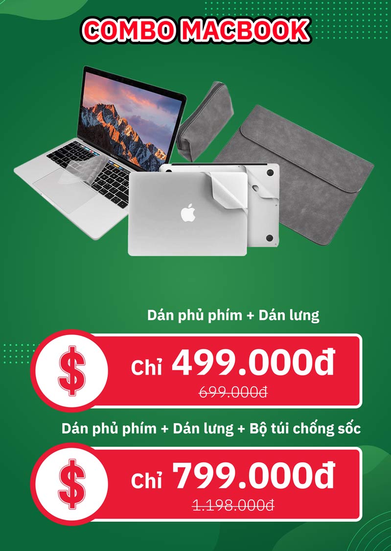 Mua combo phụ kiện theo máy để nhận được giá ưu đãi nhất, tiết kiệm đến 400.000đ so với mua lẻ từng món phụ kiện.