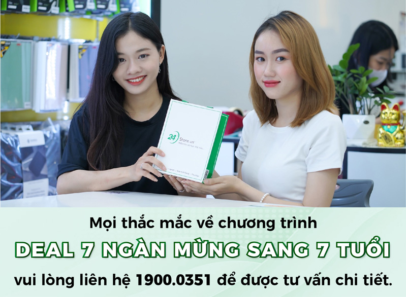 Nhằm kỷ niệm 7 năm thành lập và phát triển bền vững của hệ thống, 24hStore xin hân hoan gửi đến toàn bộ Quý khách hàng chương trình giảm giá "DEAL 7 NGÀN MỪNG SANG 7 TUỔI".