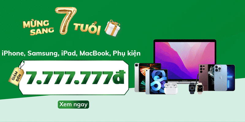 Mừng tròn 7 năm thịnh vượng của hệ thống ủy quyền chính hãng Apple Việt Nam - 24hStore (8/8/2015 - 8/8/2022). Chúng tôi quyết định tổ chức Đại tiệc Sinh Nhật GIẢM GIÁ toàn bộ sản phẩm, chỉ từ 7.000đ cùng với đó là chương trình bốc thăm nhận suất mua iPhone 8 và Galaxy A13 chỉ 7.000đ.