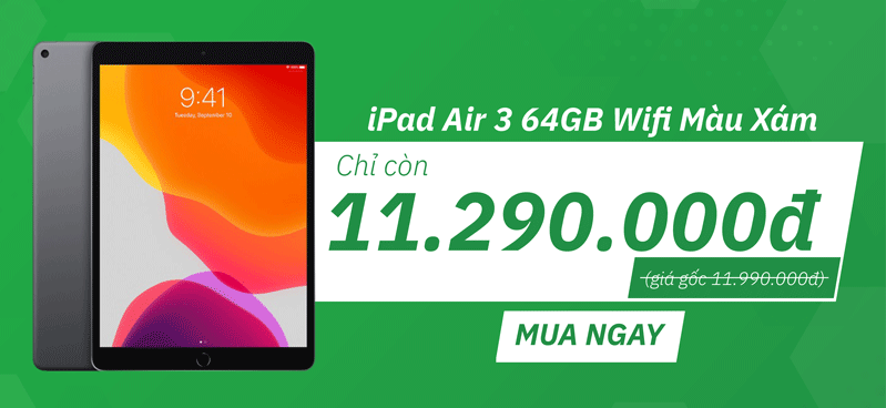 iPad Air 3 64GB Wifi Màu xám GIẢM SỐC 700.000Đ, bàn phím iPad GIẢM ĐẾN 1.700.000Đ, duy nhất trong sự kiện NGÀY VÀNG - GIÁ SỐC 17/07/2020.
