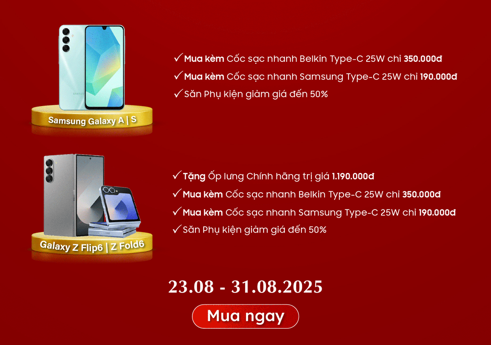 - Tặng Phụ kiện chính hãng, Voucher 50.000đ giảm thẳng vào giá máy và Voucher 100.000đ sắm phụ kiện khi mua: