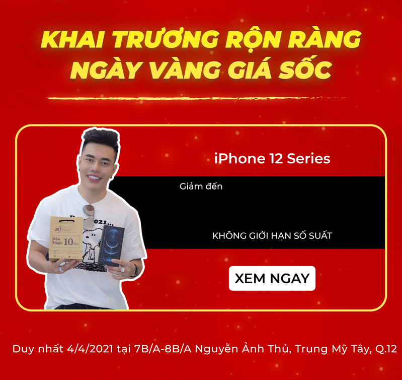 1. GIẢM THẤP HƠN GIÁ WEB: từ 23/03 đến hết 04/04/2021, mua sắm điện thoại, MacBook, iPad, AirPods, Apple Watch tại Chi nhánh 7B/A-8B/A Nguyễn Ảnh Thủ, Trung Mỹ Tây, Quận 12, Quý khách hàng sẽ được giảm 100.000đ so với giá web.