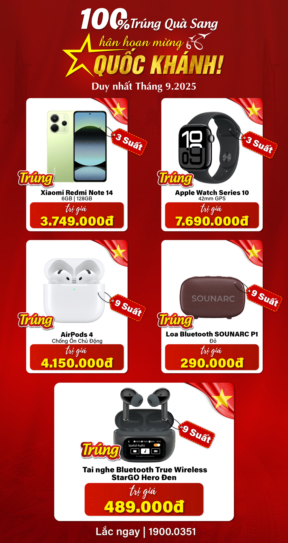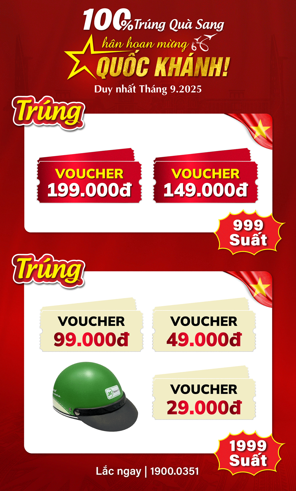 100% trúng quà sang - Hân hoan mừng Quốc khánh!