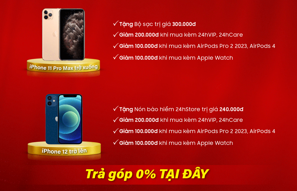 - Không áp dụng song song với chương trình Trả góp 0%/Trả góp 4 không