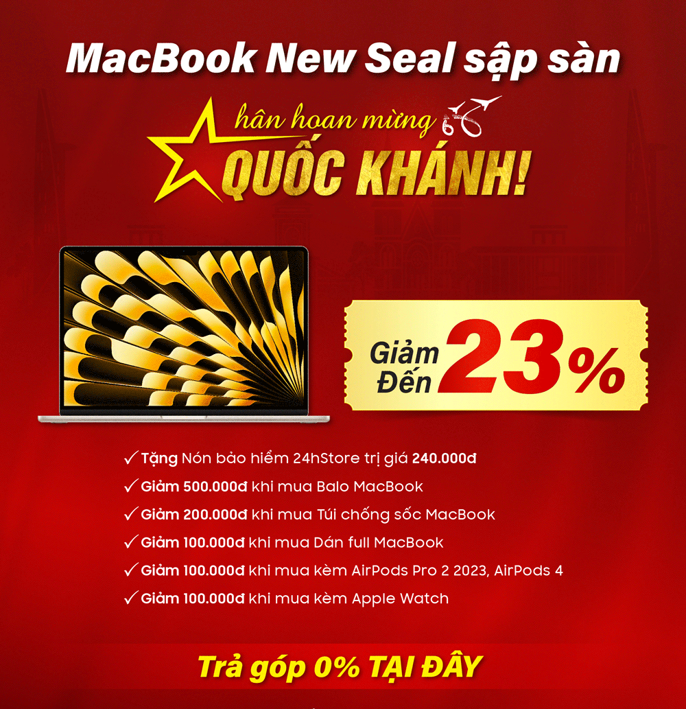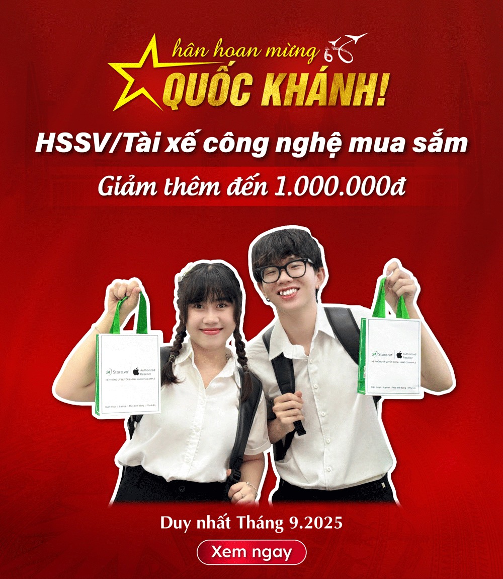Khi cả nước cùng hướng về Đại Lễ, 24hStore cũng muốn tri ân thế hệ trẻ đang học tập và những người lao động miệt mài trên đường phố, góp phần dựng xây và phát triển đất nước. Vì vậy, trong tháng 9 này, các bạn Học sinh/Sinh viên và các Bác tài xe công nghệ sẽ được giảm ngay đến 1.000.000đ khi mua sắm tại 24hStore, vừa hưởng ưu đãi thiết thực, vừa hòa mình vào không khí hân hoan mừng Quốc khánh: