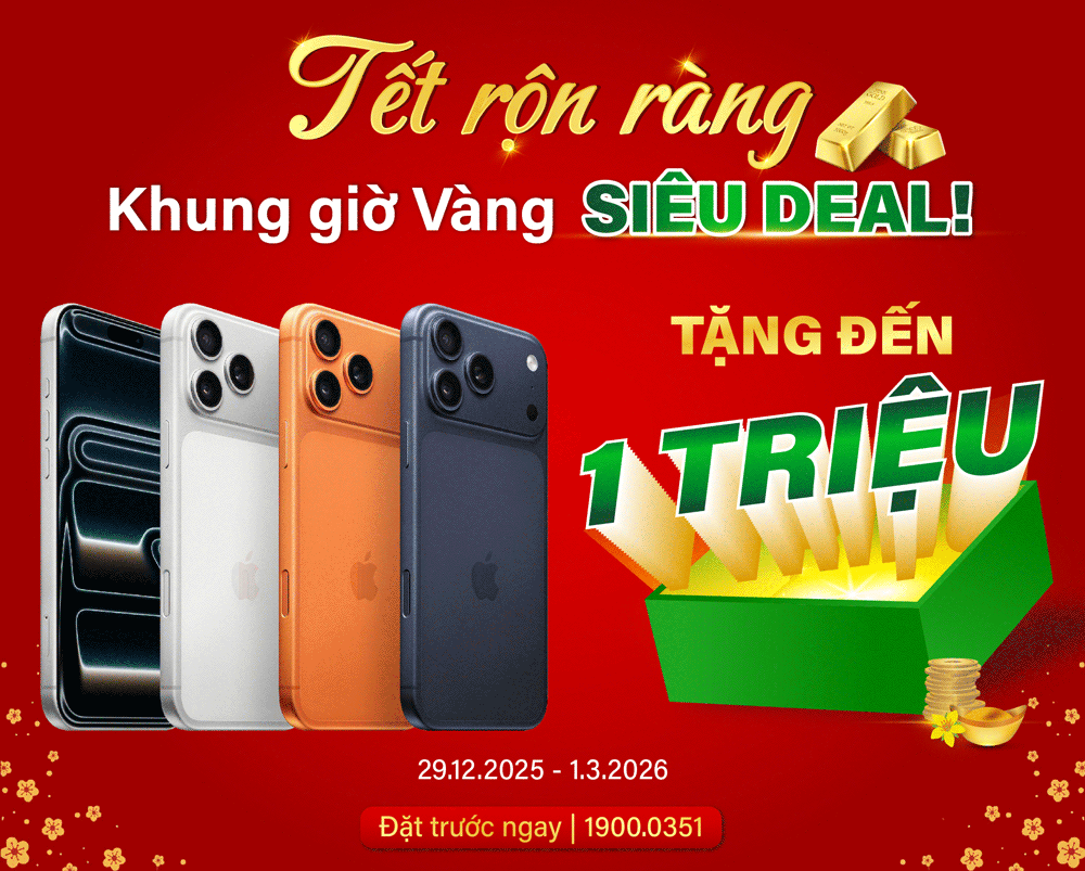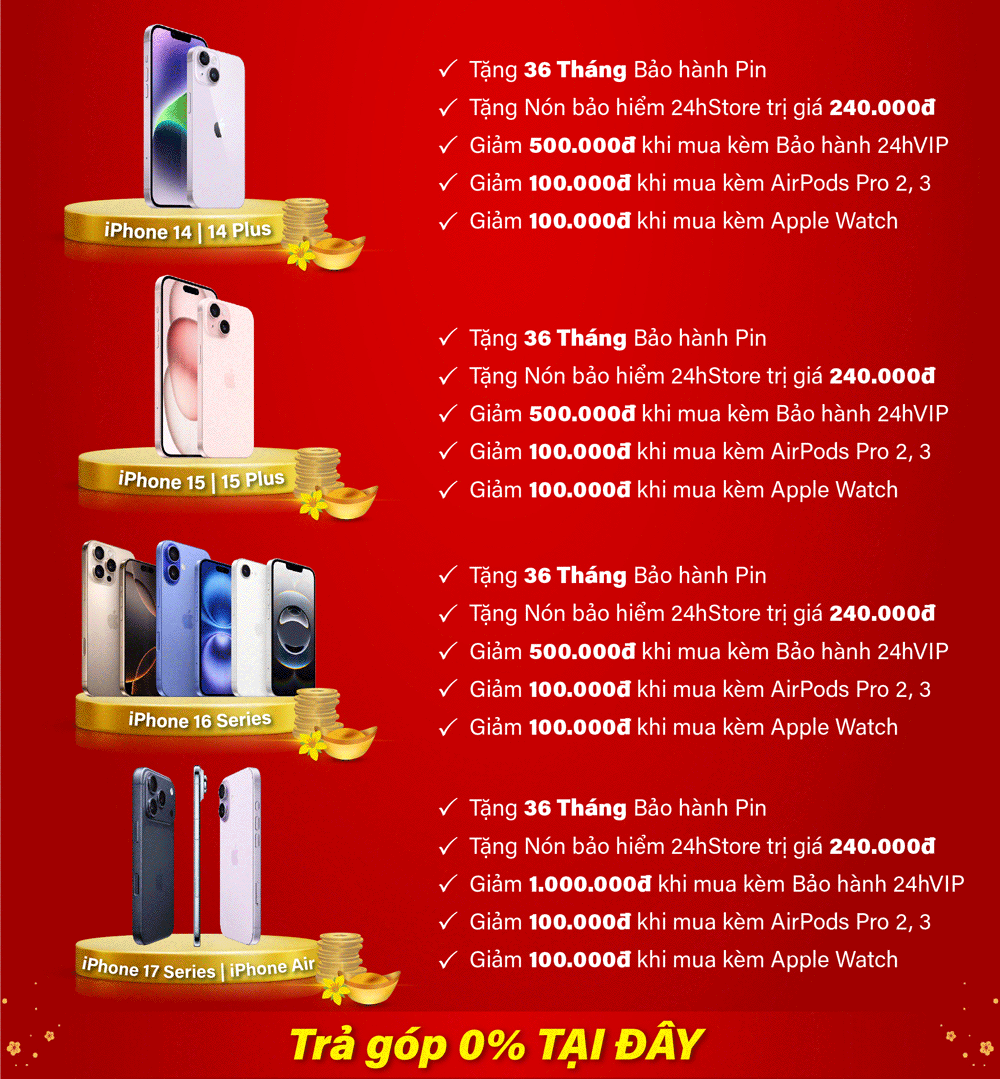 Lên đời iPhone 17, iPhone 17 Pro, iPhone 17 Pro Max hoặc iPhone Air từ iPhone 15 Series hoặc iPhone 16 Series, nhận ngay AirPods 4 hoặc Voucher giảm giá đến 2.500.000đ, giúp Quý khách bước sang năm mới với sản phẩm dẫn đầu công nghệ mới, trải nghiệm mới, giá trị tối ưu.