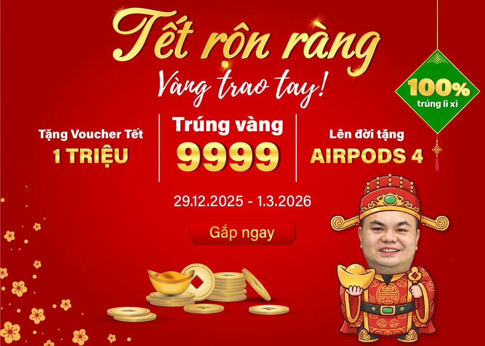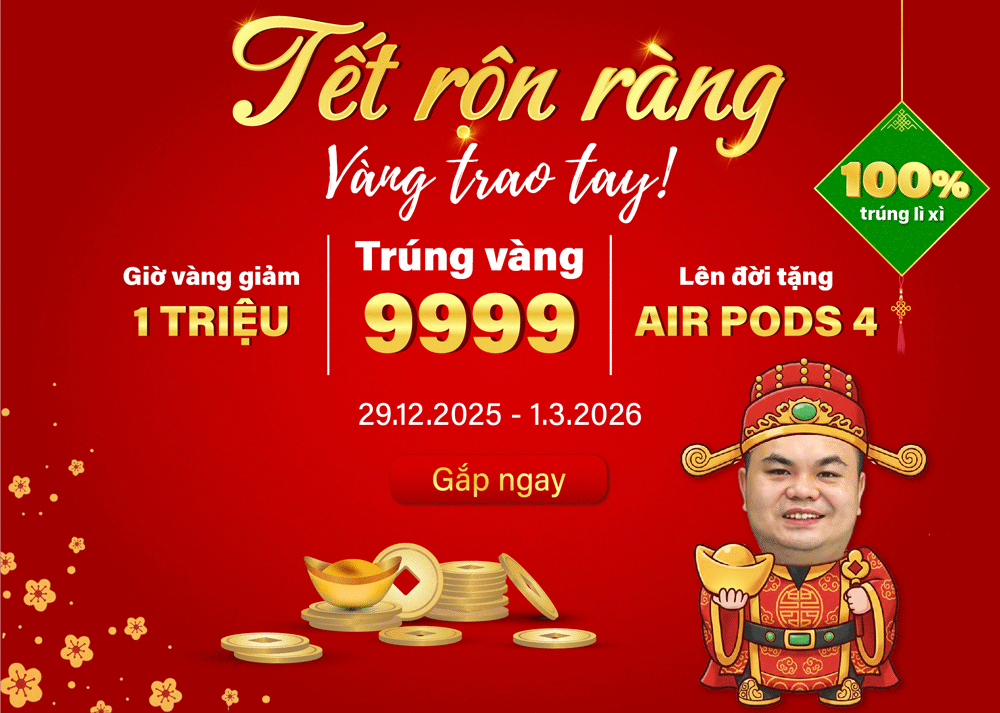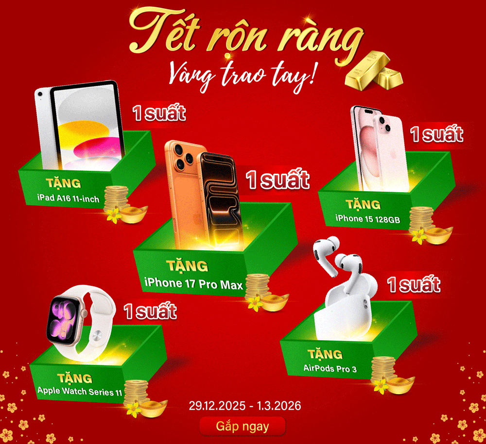 Tết 2026 nổ quà cùng Ông Thành Thần Tài: Gắp là trúng iPhone 17 Pro Max, iPad A16, Apple Watch Series 11, AirPods Pro 3, vàng 9999… Đặc biệt, thu cũ lên đời iPhone 17 Series hoặc iPhone Air, nhận ngay AirPods 4 hoặc voucher 2,5 triệu đồng!