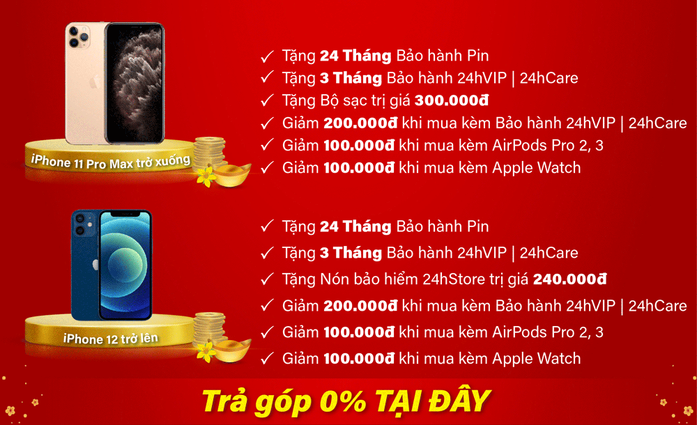 24hStore xin tặng Quý khách Voucher đến 1.000.000đ trong khung giờ Vàng đầu xuân, như lời chúc năm mới thuận lợi - hanh thông - tài lộc.