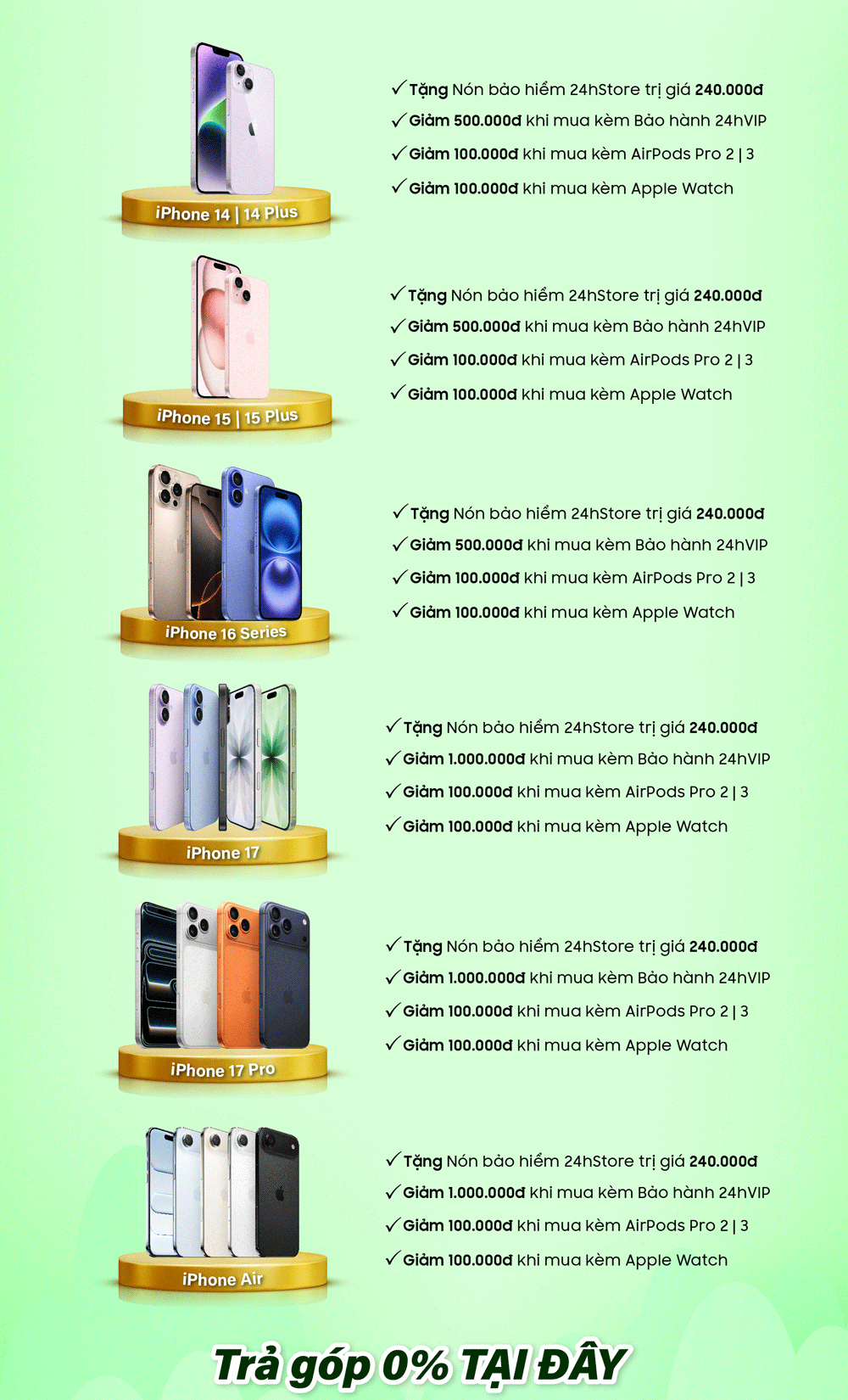 - Không áp dụng song song với chương trình Trả góp 0%/Trả góp 4 không