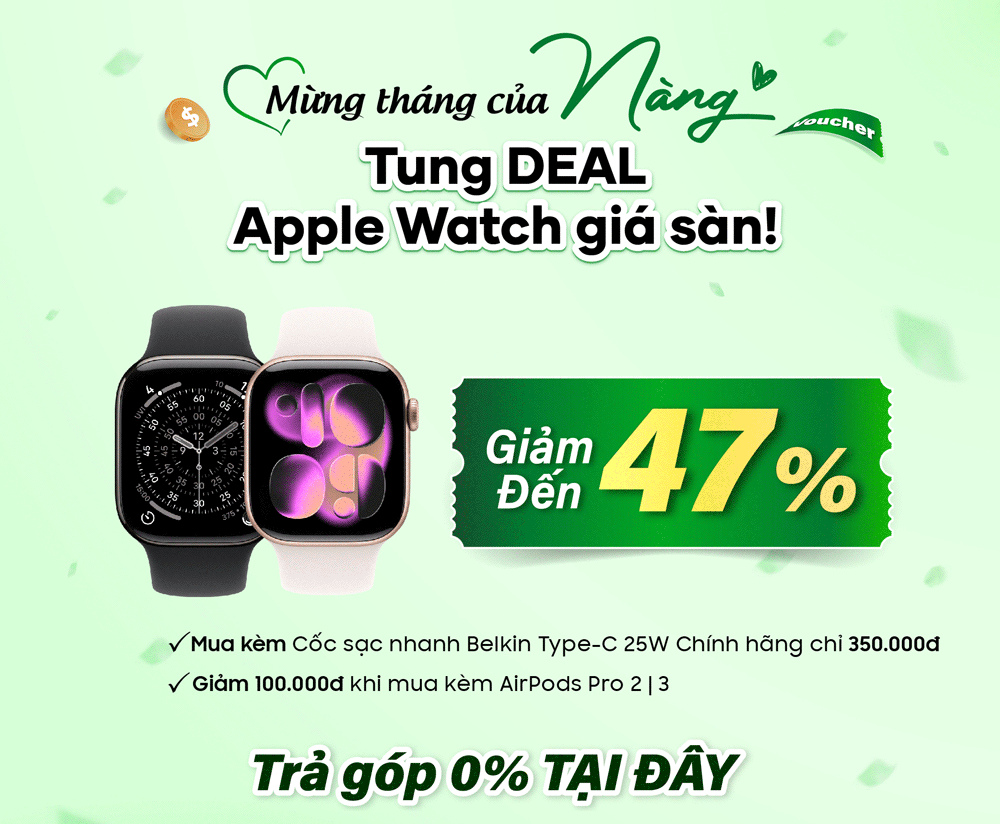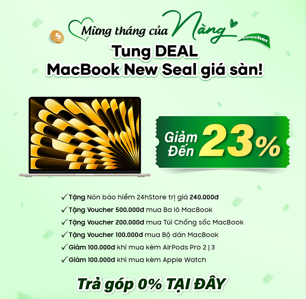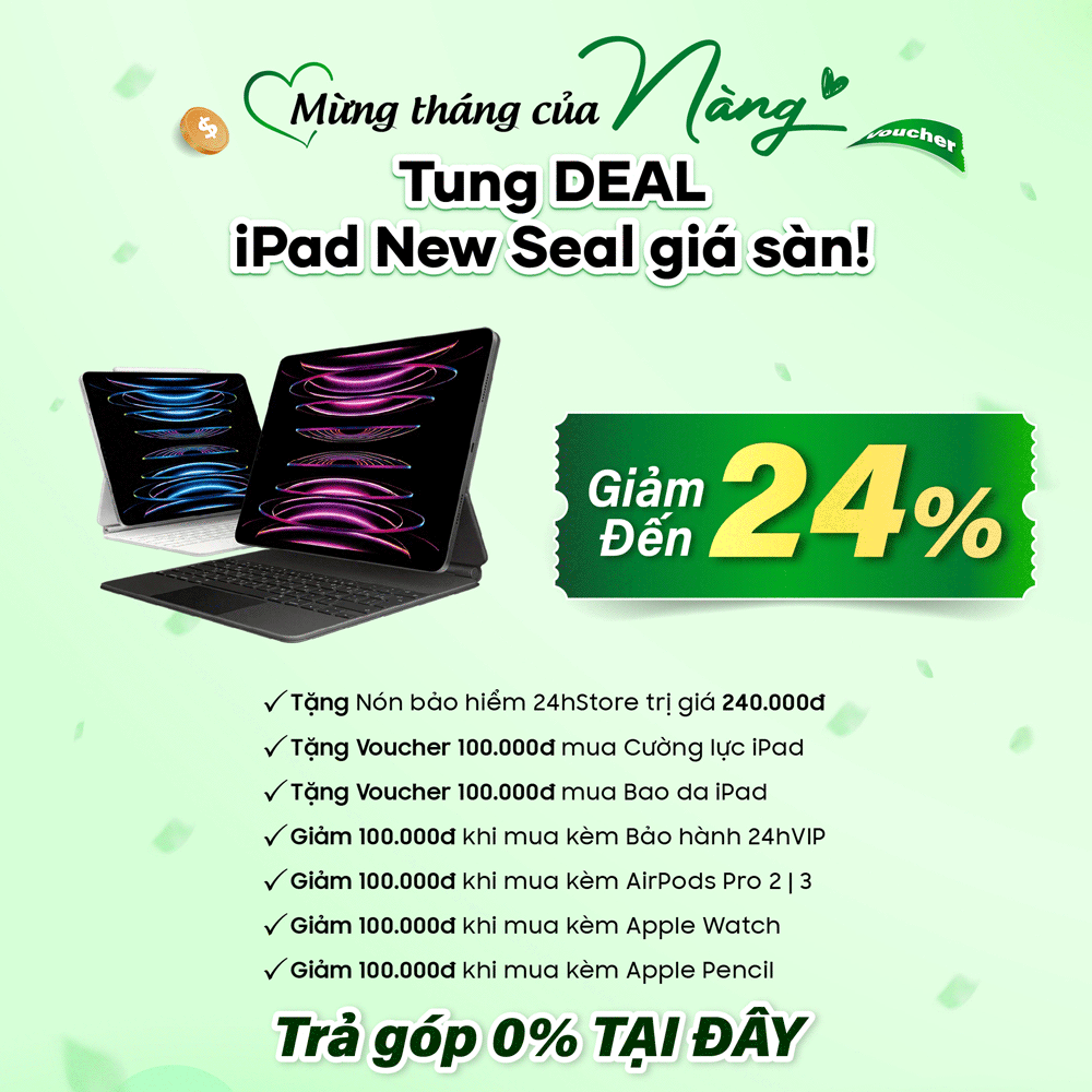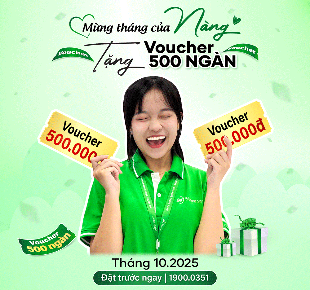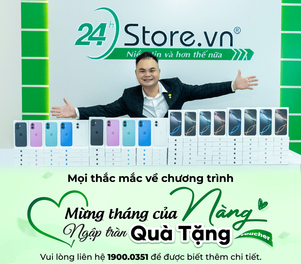 Trong tháng tôn vinh phái đẹp Việt Nam, 24hStore gửi đến các Nàng những món quà không chỉ có giá trị vật chất mà còn mang nhiều ý nghĩa. Voucher giảm đến 500.000đ như lời khích lệ để Nàng tự tin chọn món đồ mình yêu thích. Minigame 100% trúng quà với giá trị lên đến 17.000.000đ chính là niềm vui bất ngờ, bởi phụ nữ hiện đại luôn xứng đáng được tận hưởng sự hứng khởi trong từng trải nghiệm. Và đặc biệt, với chương trình thu cũ đổi mới iPhone tặng ngay AirPods 4 hoặc voucher trợ giá 2.500.000đ, 24hStore mong rằng Nàng sẽ luôn bắt kịp xu hướng công nghệ, đồng thời vẫn giữ trọn phong cách cá nhân. Chúng tôi tin rằng, quà tặng ý nghĩa nhất dành cho phụ nữ hiện đại chính là sự tiện nghi, thẩm mỹ và cảm giác được trân trọng trong từng chi tiết.