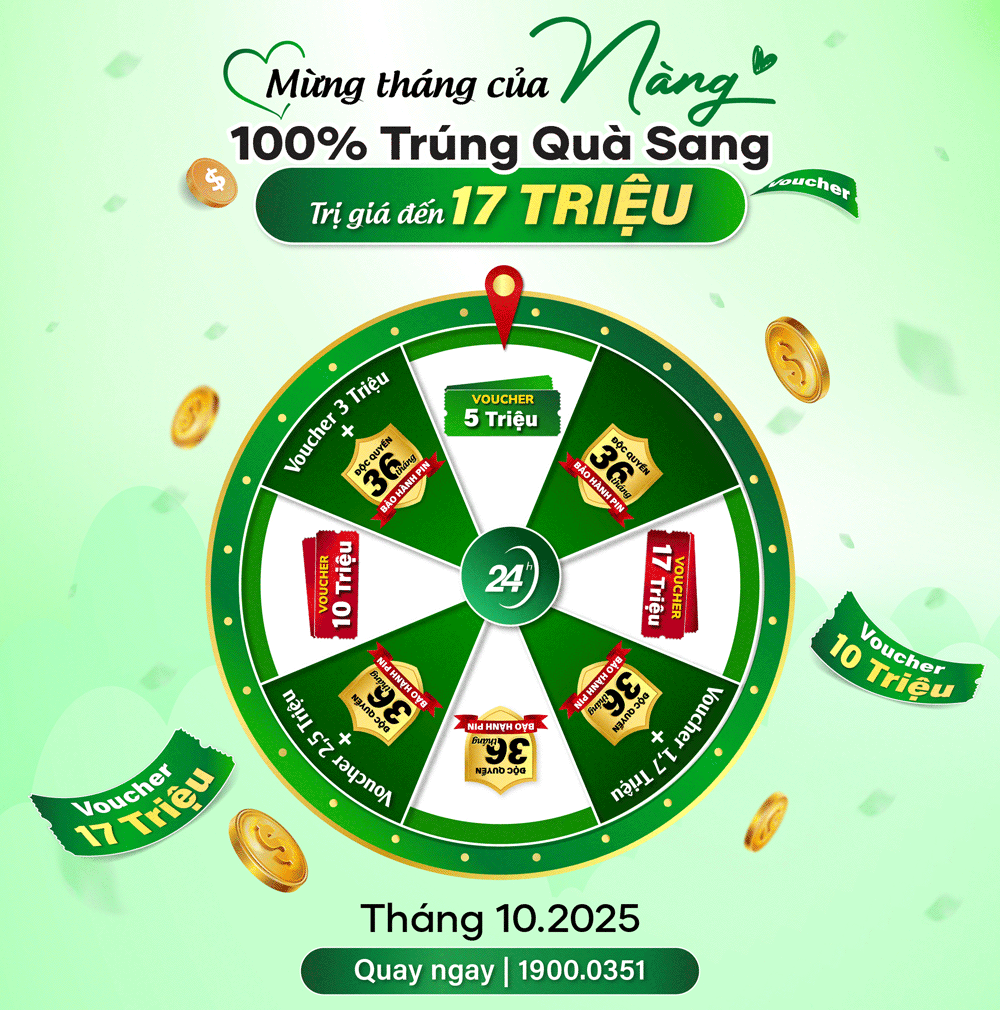 5.000 Voucher 2.500.000đ + Độc quyền 36 Tháng Bảo Hành Pin