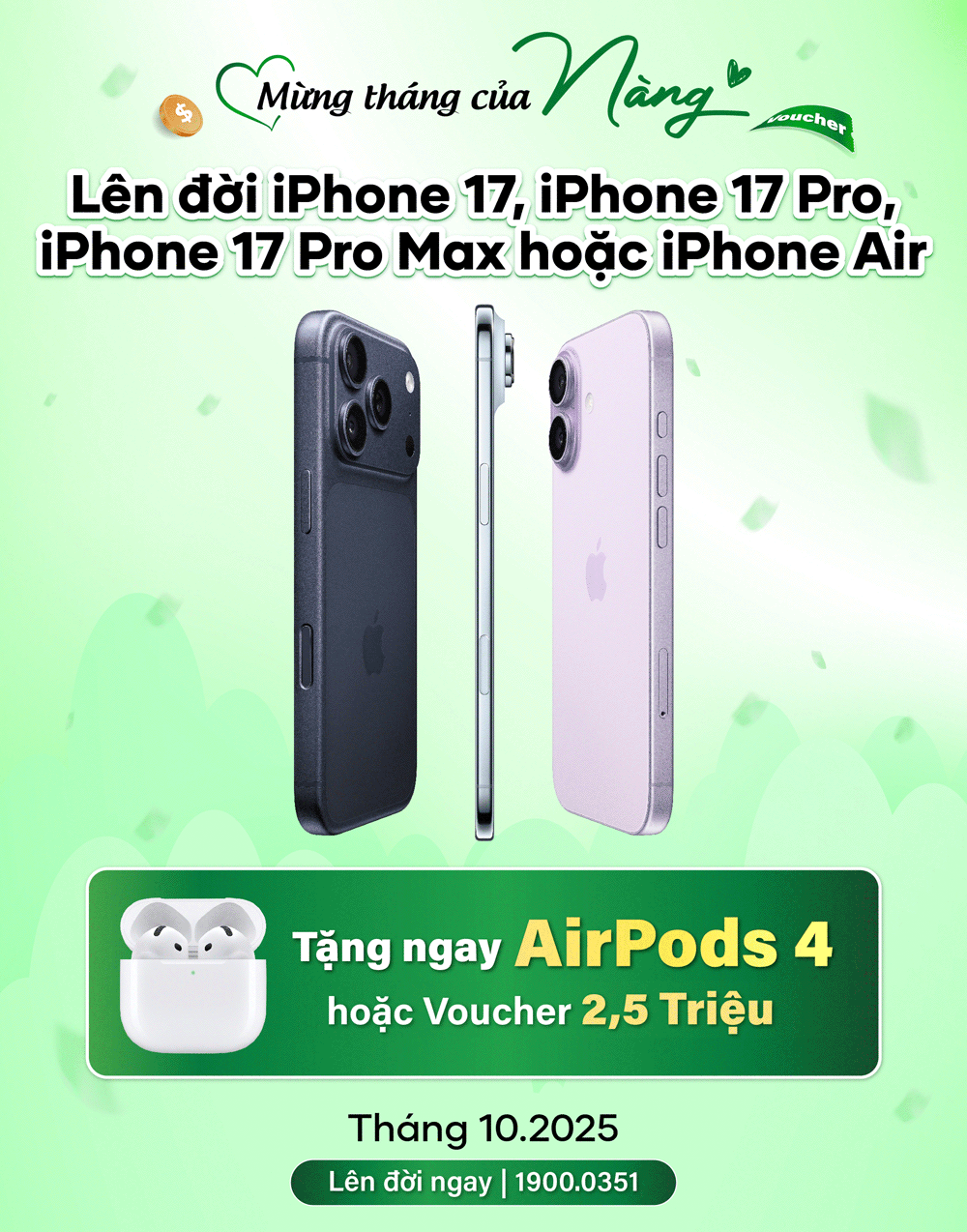 Tháng của Nàng, lên đời những sản phẩm iPhone đình đám, tặng ngay AirPods 4 hoặc Voucher giảm giá đến 2.500.000đ, cụ thể: