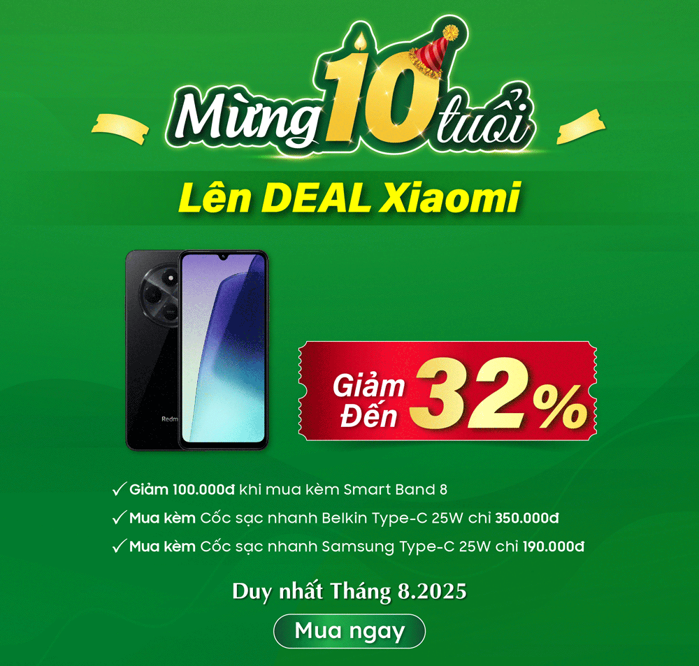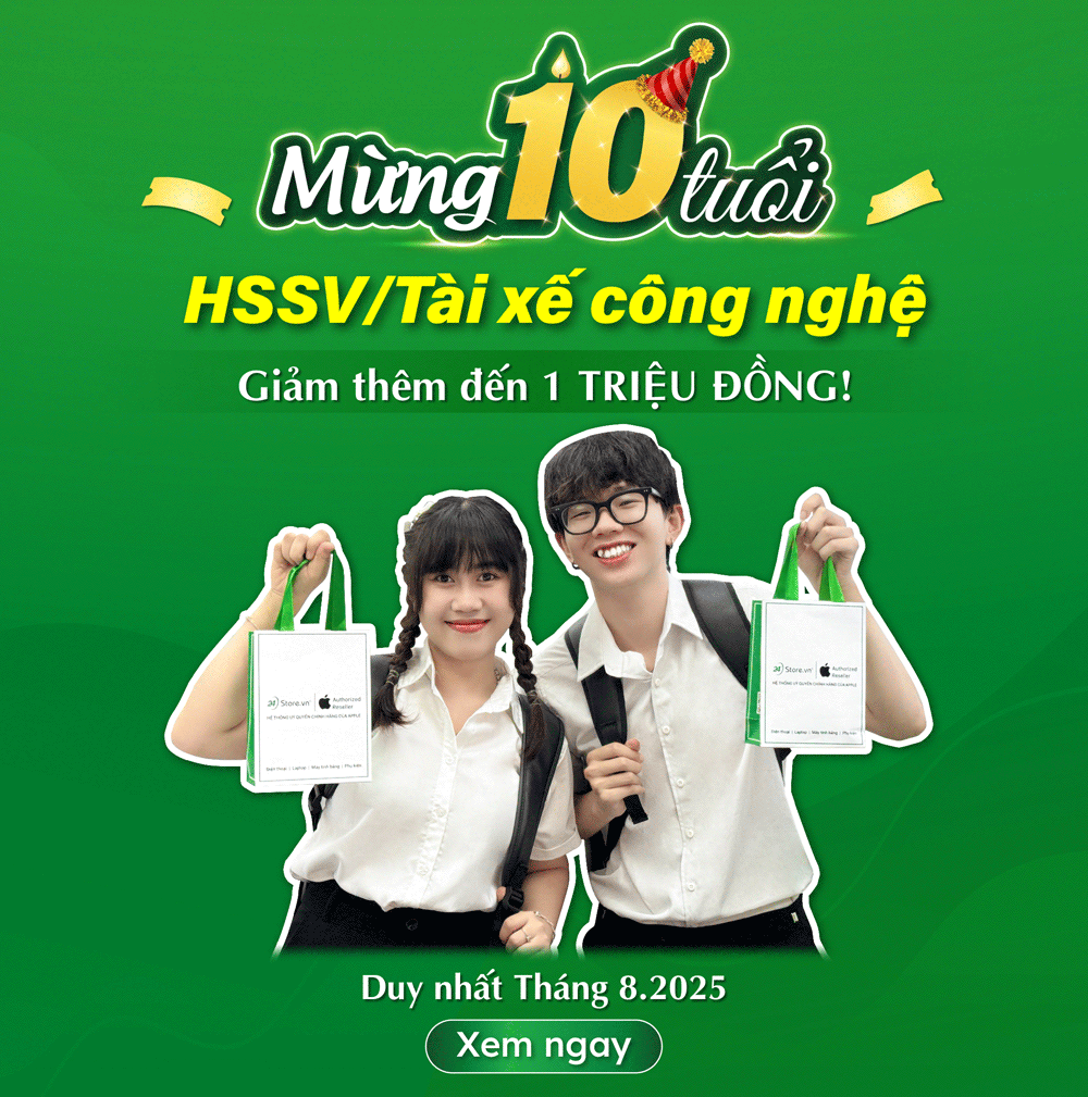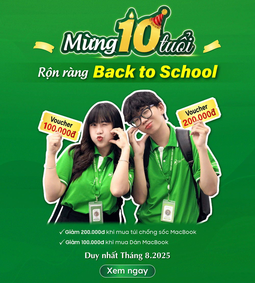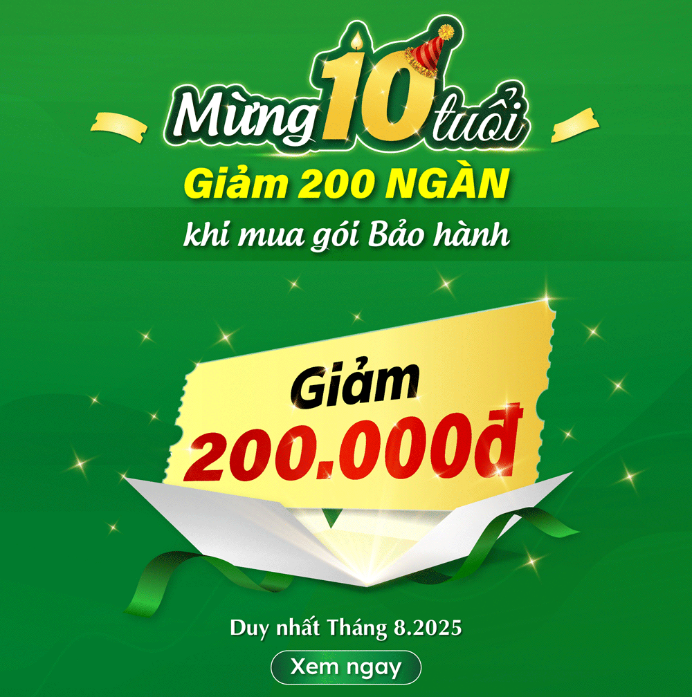 Mừng sinh nhật 10 tuổi, Quý khách đến sớm em đãi quà lớn: Tặng ngay Phụ kiện công nghệ và Voucher giảm đến 500.000đ, áp dụng cho cả mua máy lẫn sửa máy.