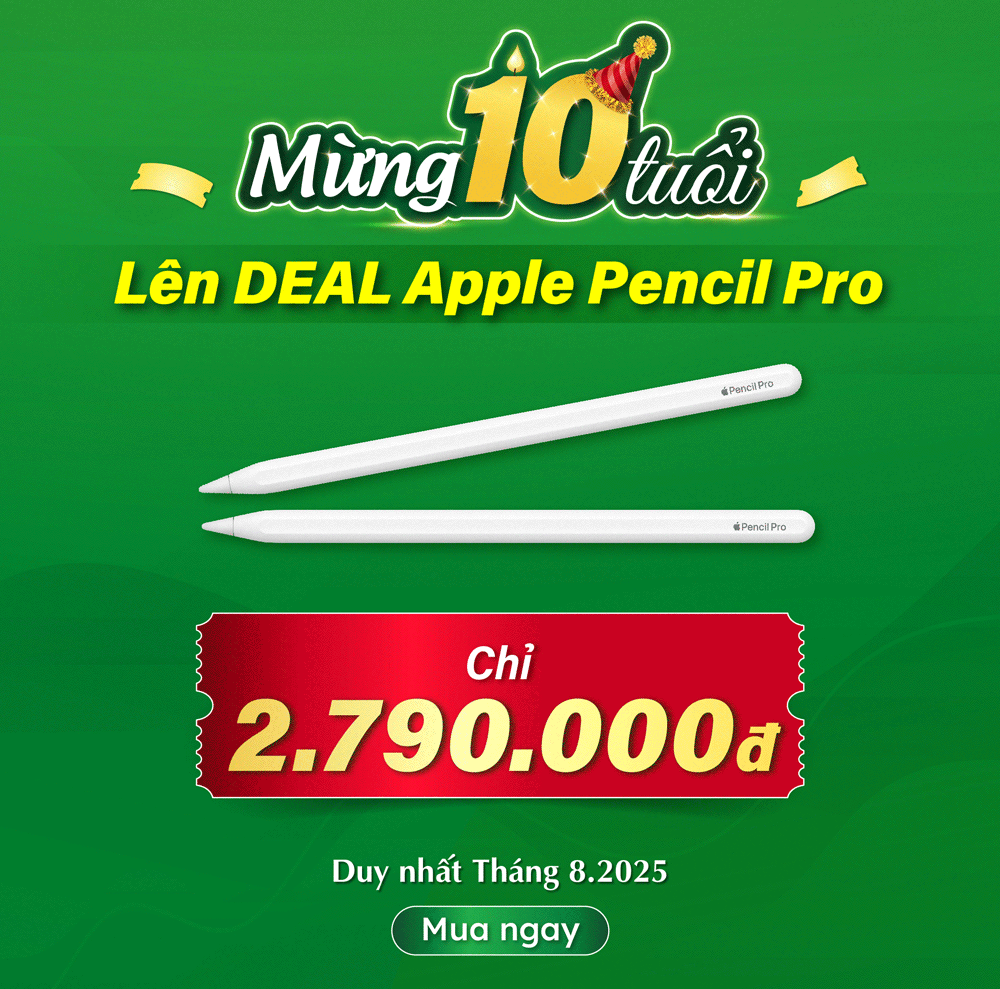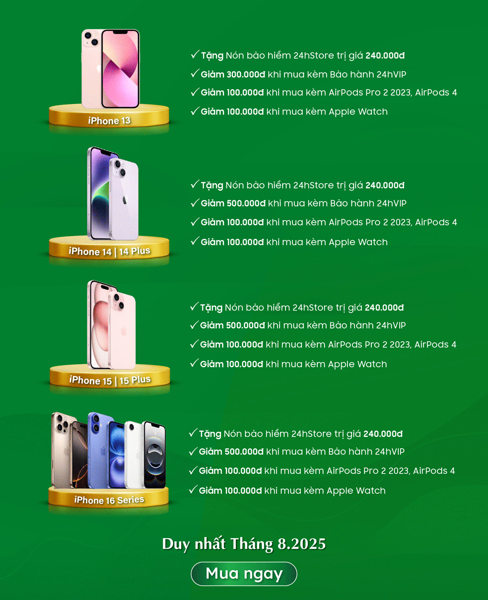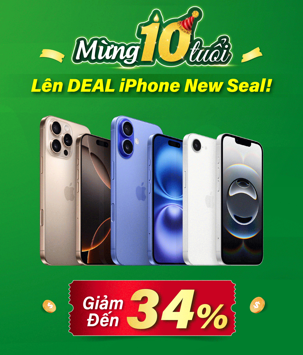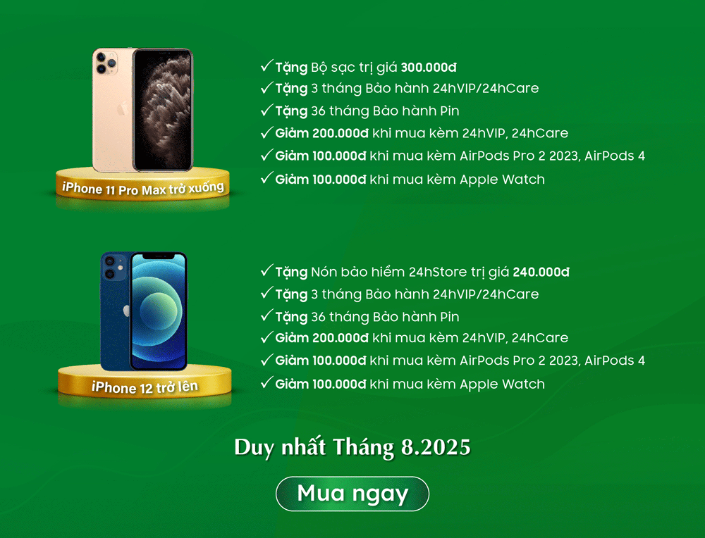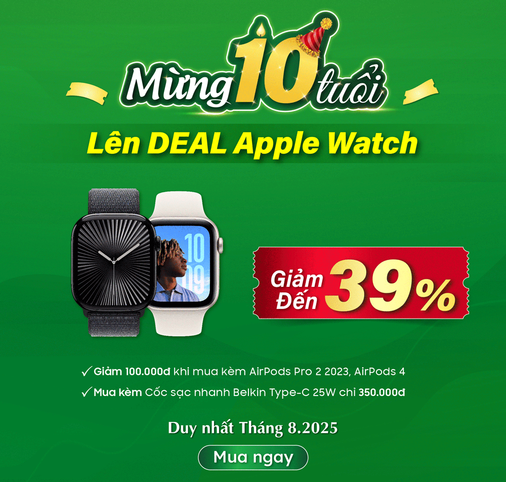Mừng lên 10 - Lên DEAL 0đ! Ăn mừng sinh nhật suốt tháng, 24hStore lên 10, chơi lớn gấp 10: Giảm giá toàn bộ sản phẩm đến 65%, tặng Voucher tới 500.000đ trừ trực tiếp vào giá máy, áp dụng cho các dòng iPhone, iPad, MacBook, Apple Watch, Samsung, Xiaomi,... Đặc biệt, mua máy hay sửa máy đều được TẶNG Phụ kiện 0đ!