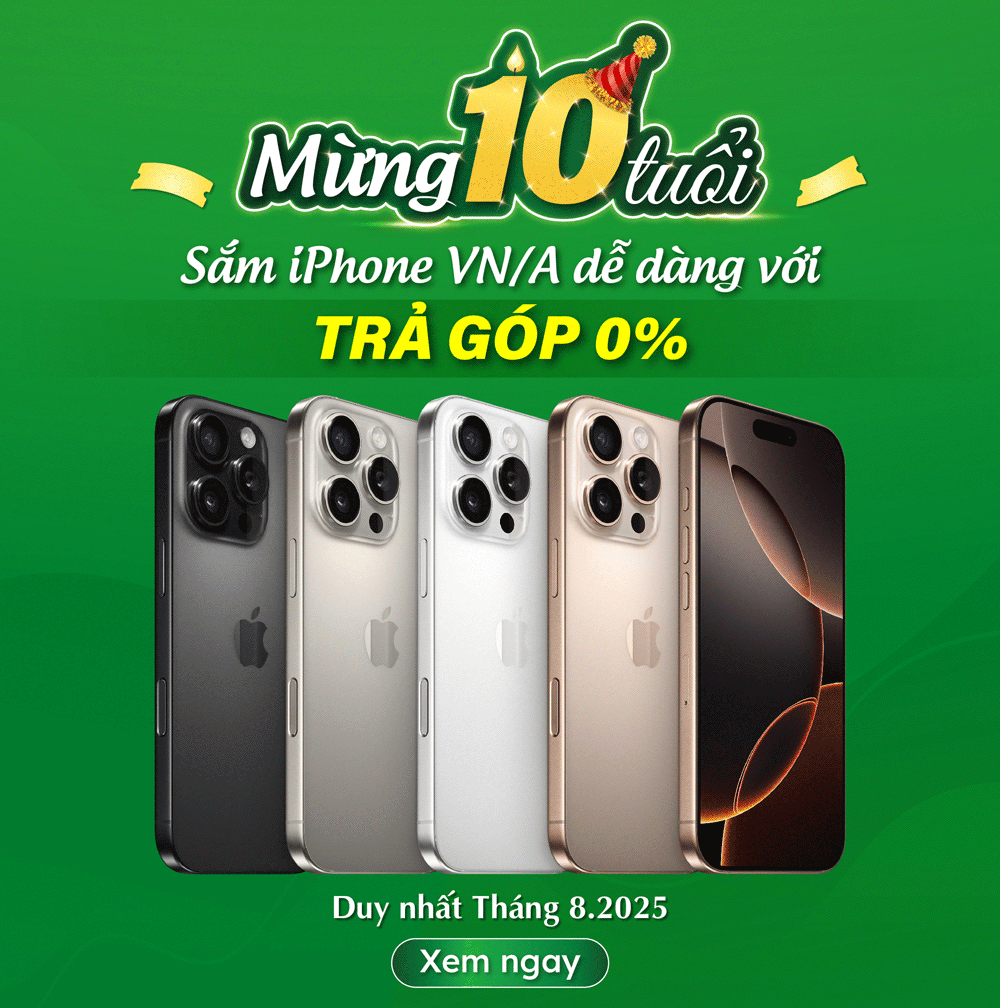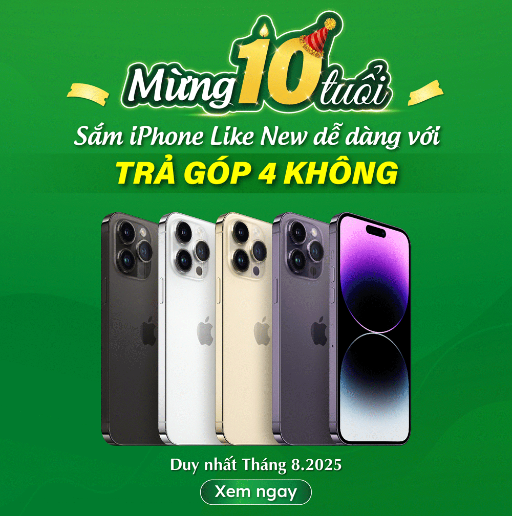 10 năm phục vụ, giờ là lúc càng phải phục vụ tốt nhất! iPhone Like New giá dễ chịu, lại còn được trả góp 4 KHÔNG: