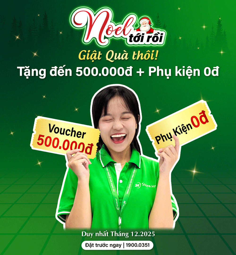 Mừng mùa Giáng Sinh, Quý khách đặt sớm - 24hStore gửi tặng quà lớn: Nhận ngay suất mua phụ kiện 0đ và voucher giảm đến 500.000đ, áp dụng cho cả mua máy lẫn sửa máy.