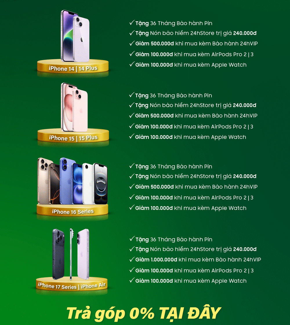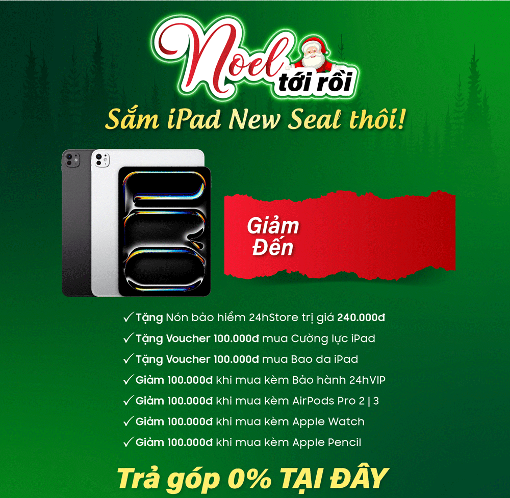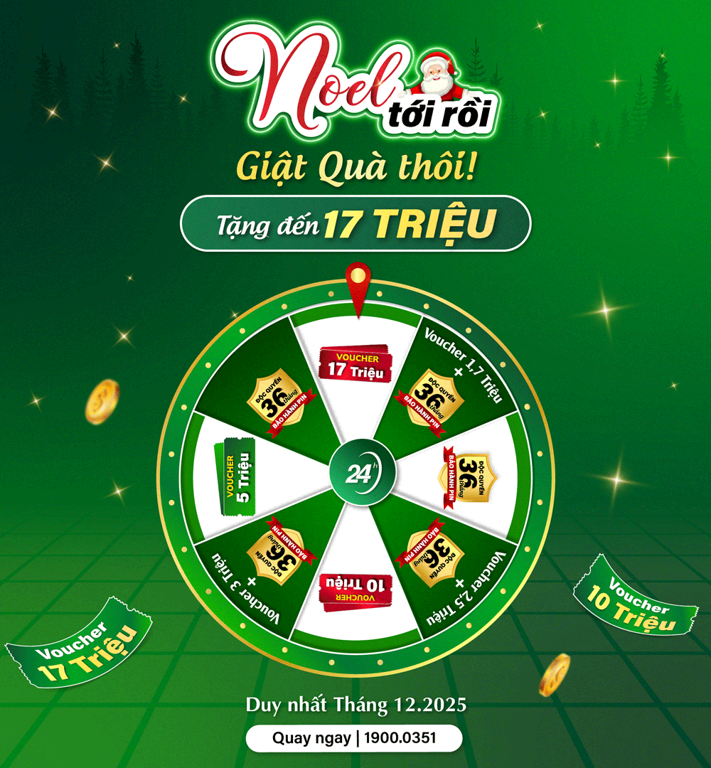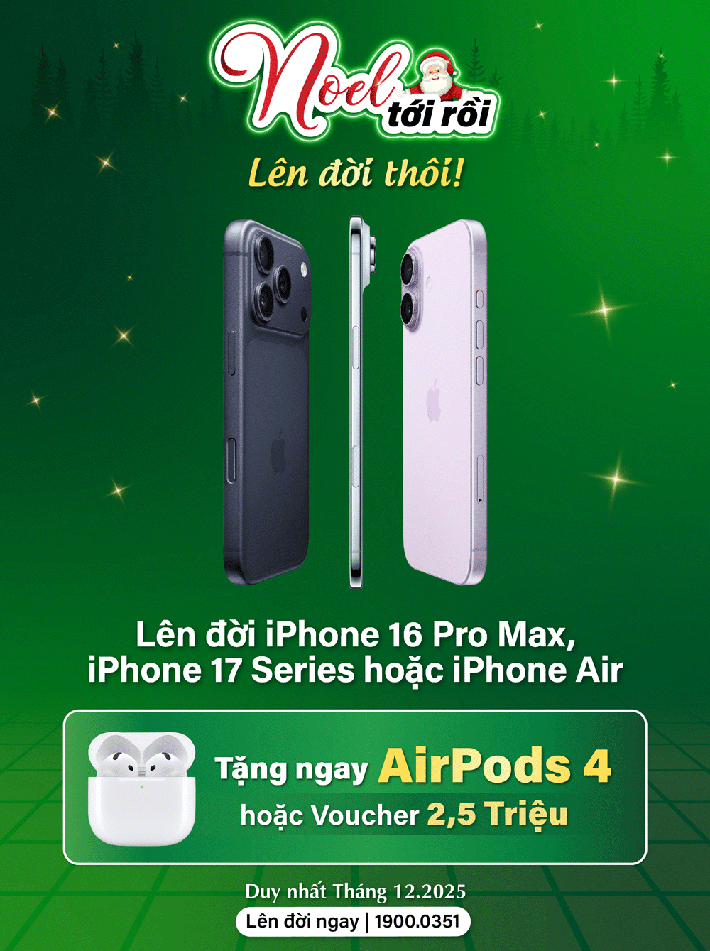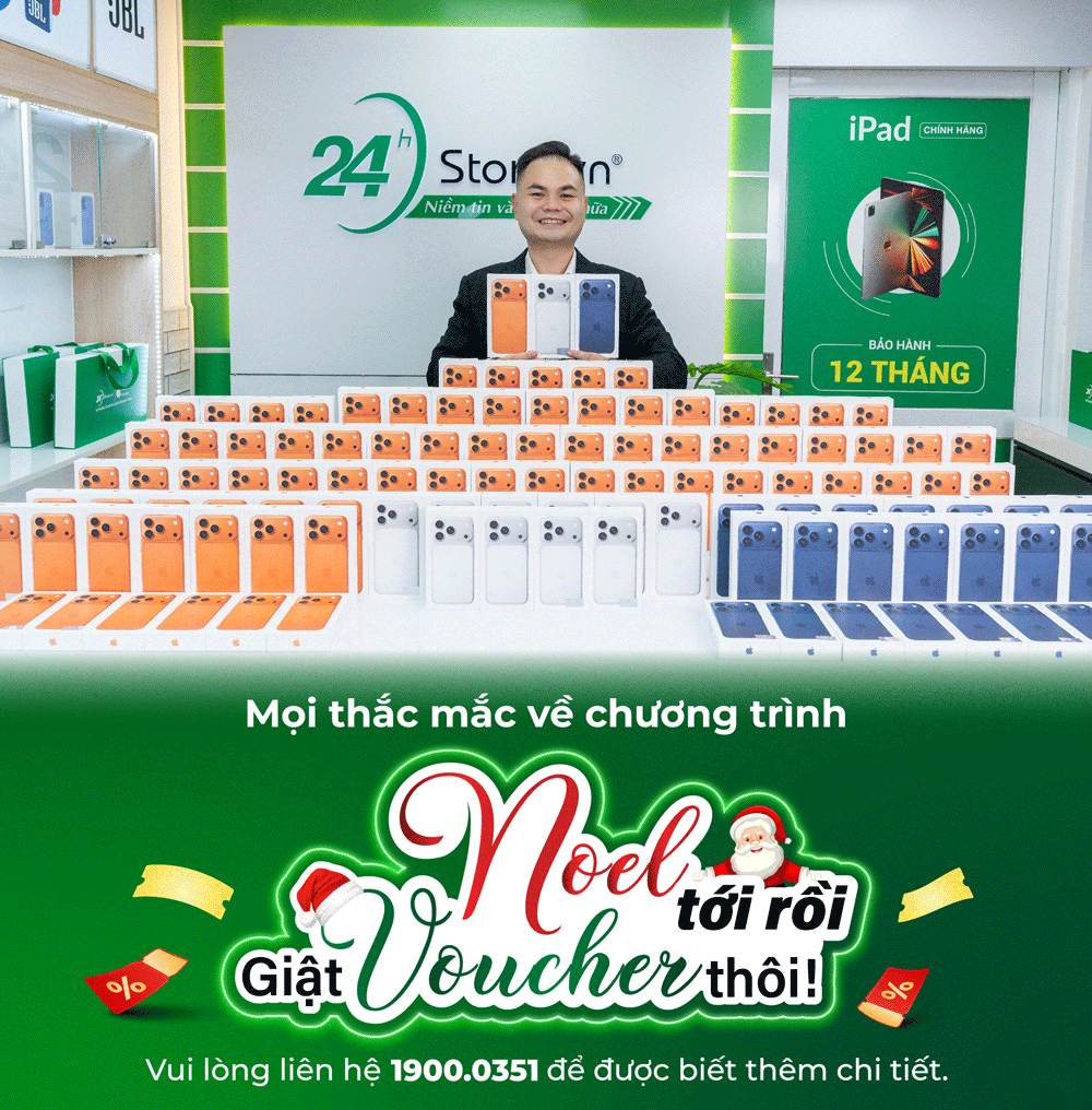Thay lời chúc Giáng Sinh an lành, 24hStore gửi đến Quý khách hàng chương trình Noel tới rồi - Giật Voucher thôi!: Nhận ngay voucher giảm đến 500.000đ khi đặt trước sản phẩm, tham gia minigame 100% trúng quà với phần quà giá trị nhất lên đến 17.000.000đ, săn phụ kiện 0đ, lên đời iPhone 17 Series, iPhone Air hoặc iPhone 16 Pro Max nhận ngay Apple AirPods 4 hoặc Voucher 2.500.000đ,...
