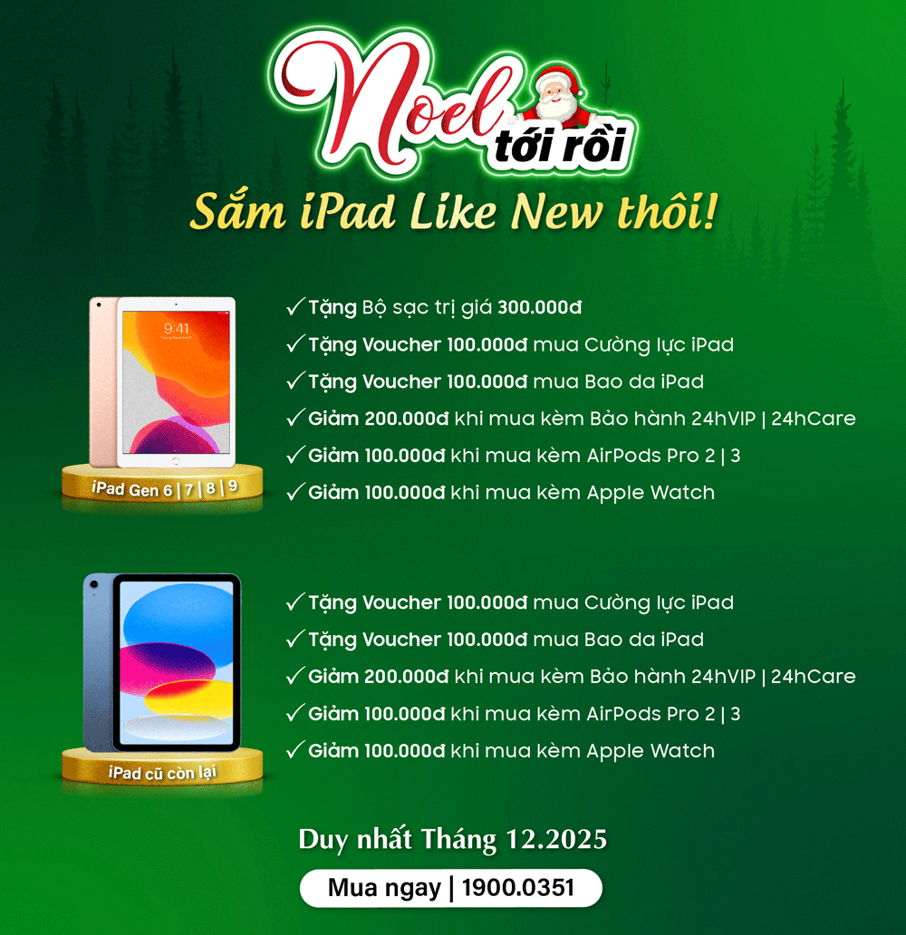 Mùa Giáng Sinh luôn là thời khắc để sẻ chia yêu thương và trao gửi niềm vui. 24hStore chính là muốn đồng hành cùng Quý khách hàng trong không khí ấm áp này, gửi tặng những món quà thiết thực giúp Quý khách có thể thuận lợi nâng cấp thiết bị hoặc mua sắm sản phẩm công nghệ tặng người thân, đúng tinh thần một mùa Giáng Sinh an lành.