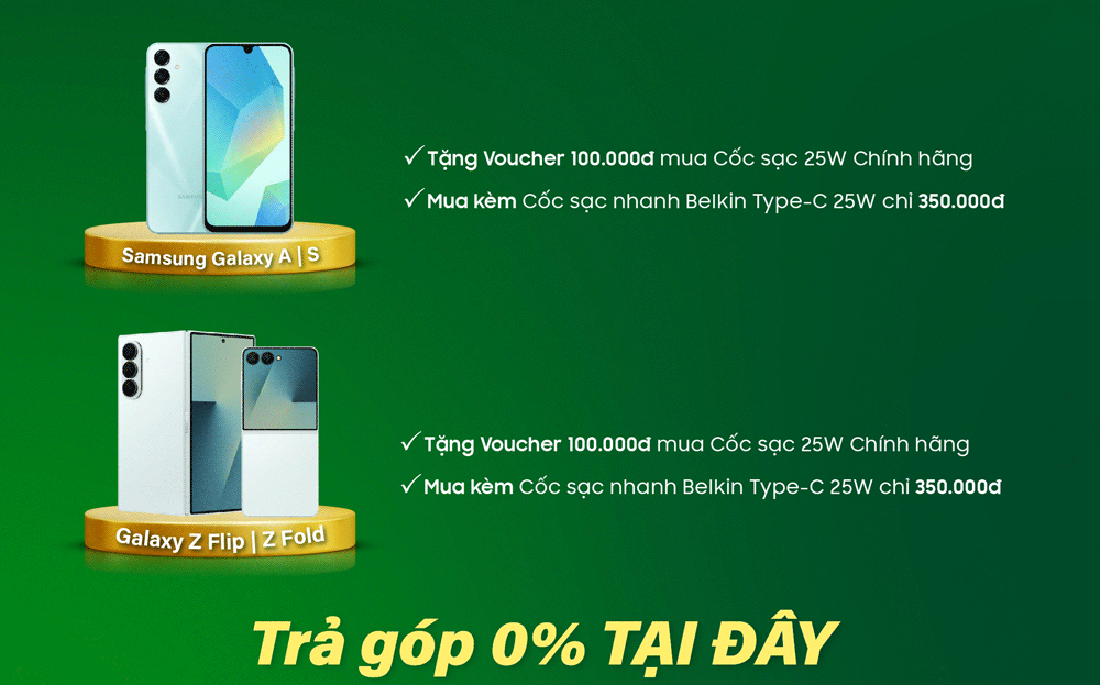 - Voucher 50.000đ, 100.000đ chỉ áp dụng mua phụ kiện có giá trị lớn hơn giá trị Voucher, không giảm trực tiếp vào giá máy.