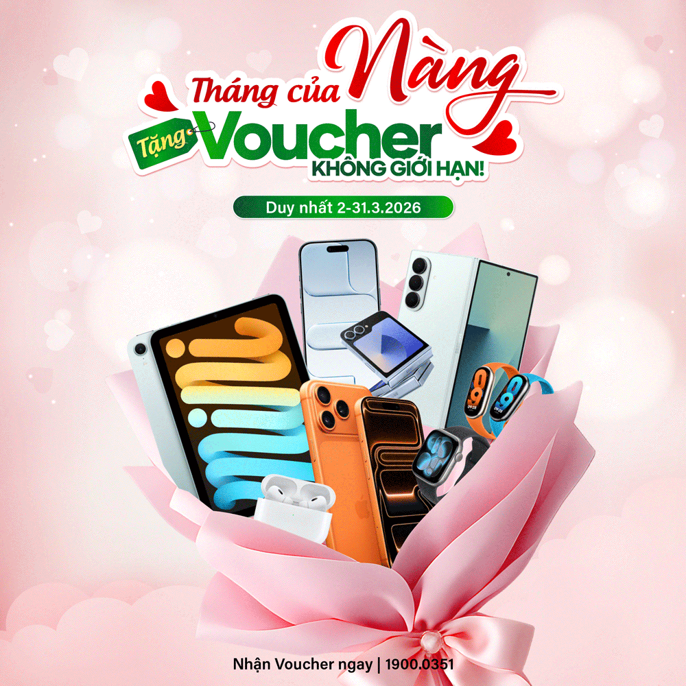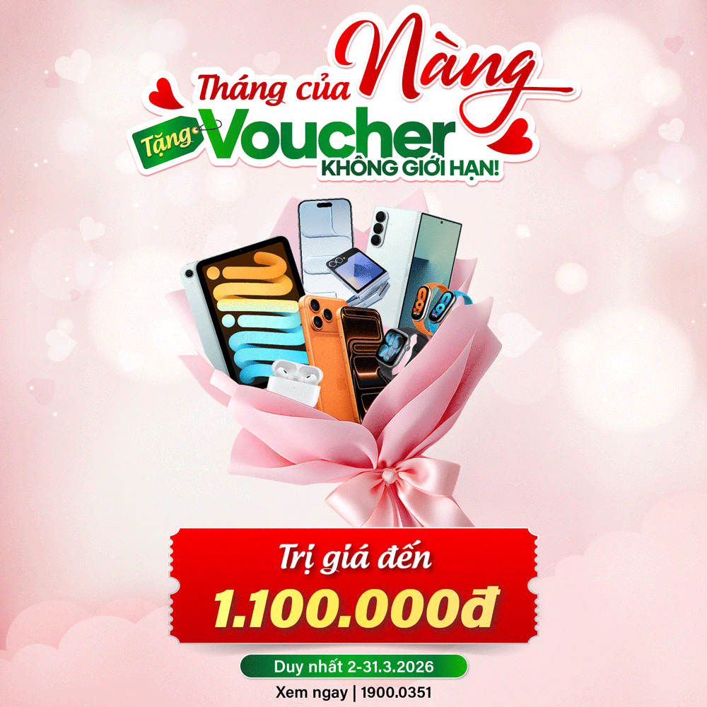Chỉ cần đặt trước, Quý khách hàng đã có thể nhận ngay Voucher giảm đến 1.100.000đ kèm ưu đãi phụ kiện đa dạng cho iPhone, iPad, MacBook, Apple Watch, các dòng máy thuộc thương hiệu Samsung, Xiaomi. Mỗi hóa đơn là một lần được trao thêm giá trị, để việc nâng cấp thiết bị không còn là quyết định phải đắn đo mà trở thành phần thưởng xứng đáng cho chính Nàng.