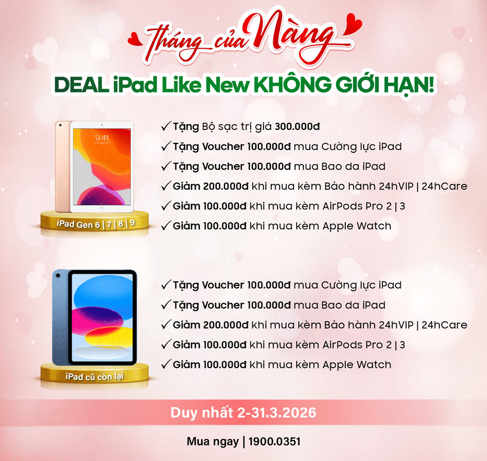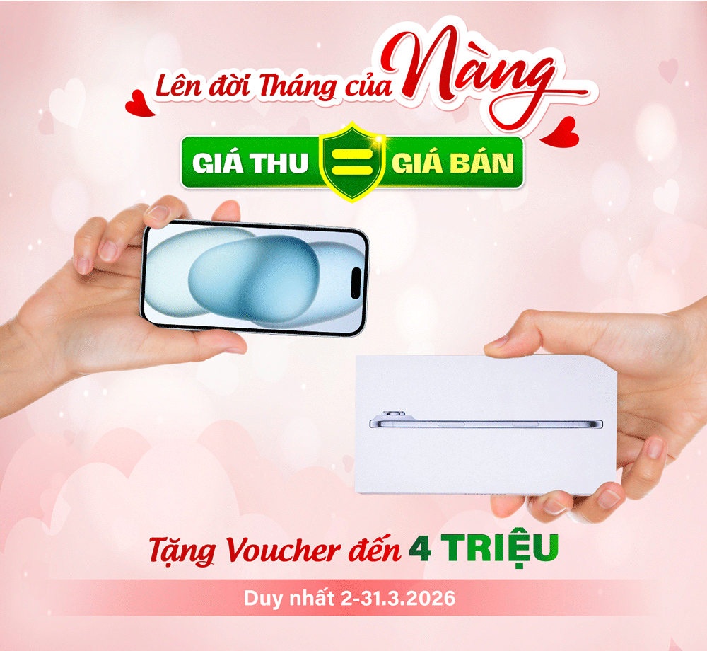 Tháng 3 - tháng của phái đẹp - là lúc Nàng được trao quyền chủ động khi nâng cấp thiết bị. Với chương trình GIÁ THU = GIÁ BÁN, 24hStore mang đến giải pháp thu cũ minh bạch tuyệt đối: báo giá rõ ràng ngay từ đầu, thu đúng bằng giá đang bán trên hệ thống, không mặc cả, không trừ giá vô lý. Nàng có thể tự tin lên đời, không còn cảm giác "bị lỗ" khi đổi máy.