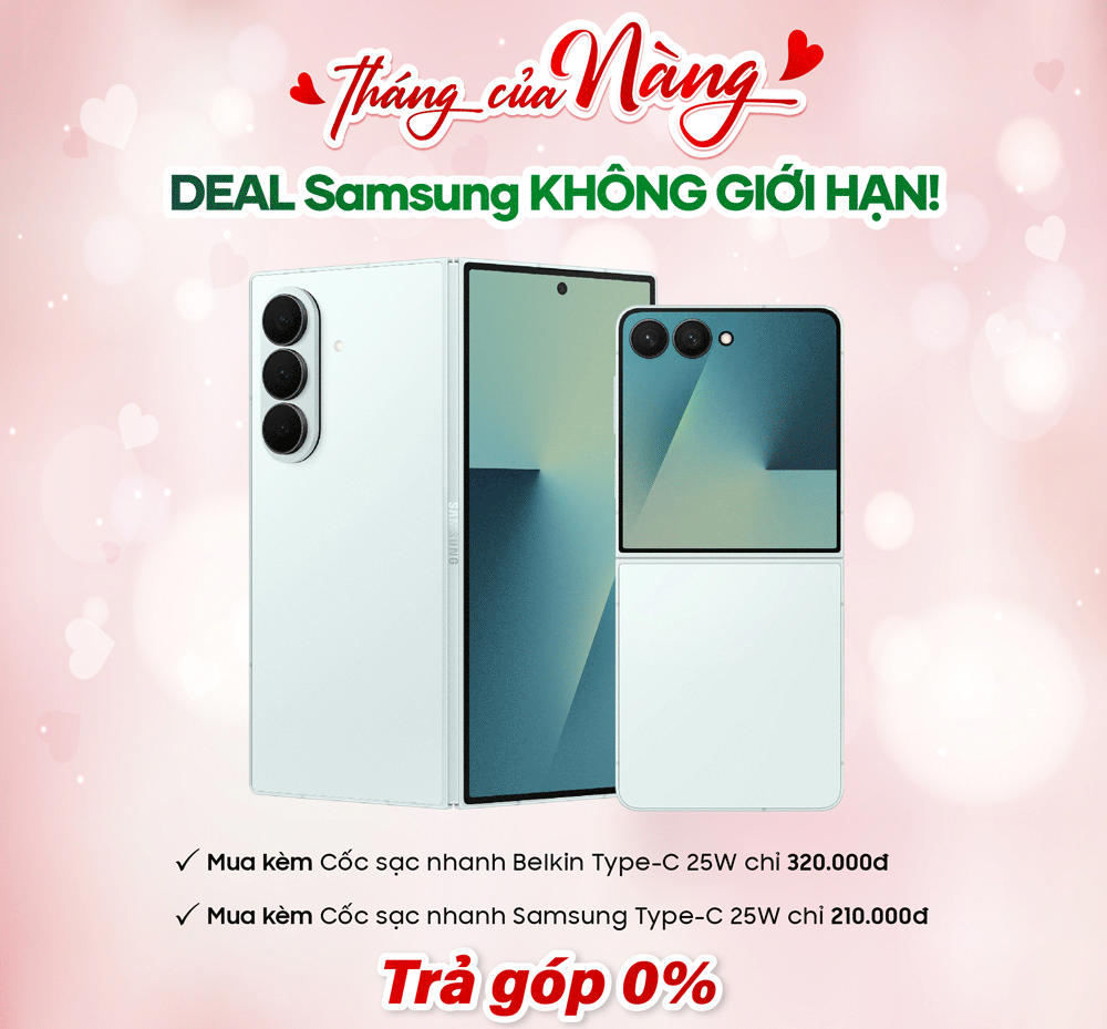 Khi phái đẹp là trung tâm, mọi quyền lợi đều được nâng tầm: Tặng Voucher không giới hạn khi đặt trước, bùng nổ DEAL mua kèm, DEAL Phụ kiện, lên đời nhẹ nhàng với chính sách Giá thu = Giá bán, Trả góp 0%, Tặng 36 tháng bảo hành Pin,...