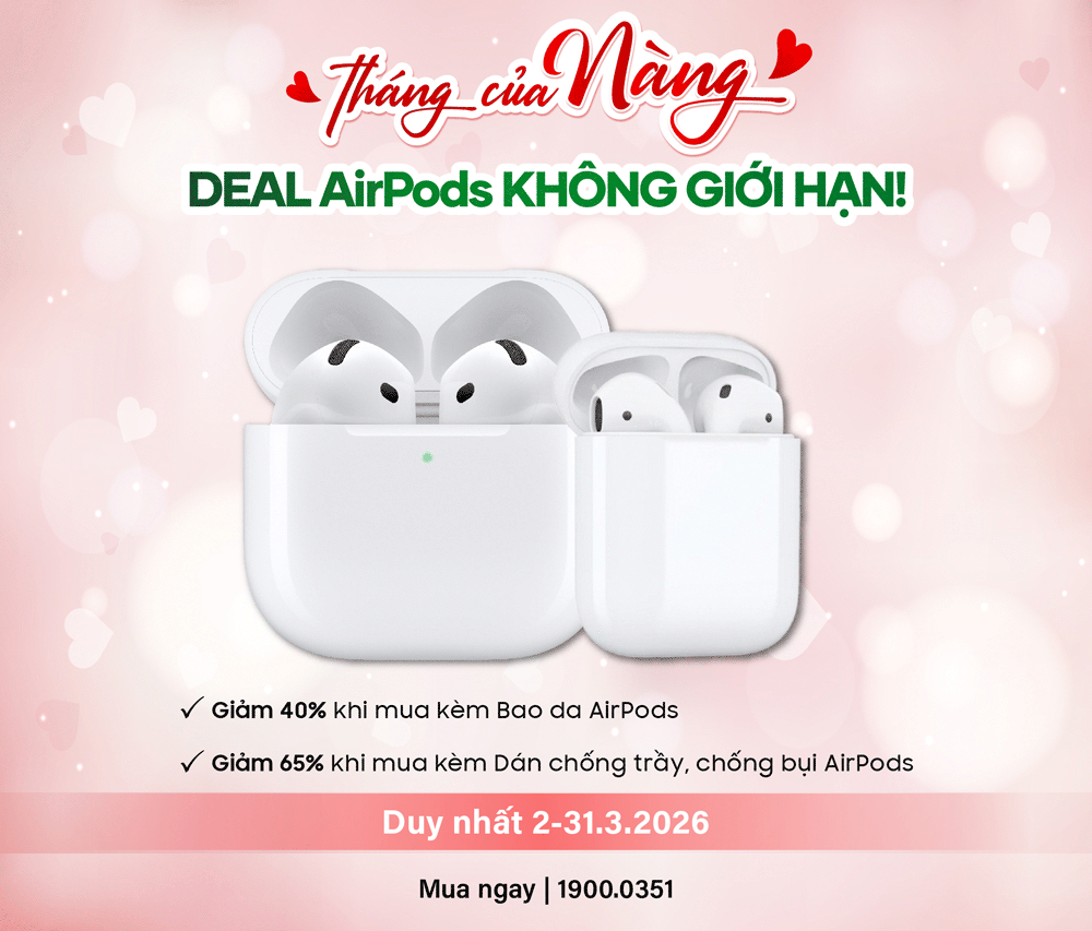 - Tặng bao da AirPods khi mua AirPods mới - gọn gàng, tinh tế, dễ dàng phối với mọi outfit